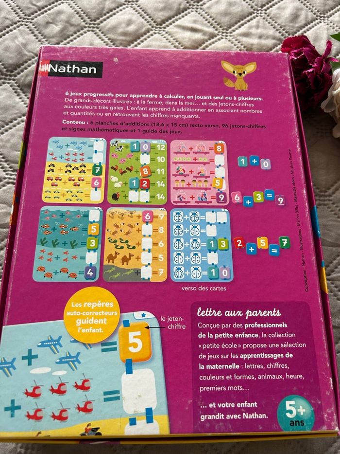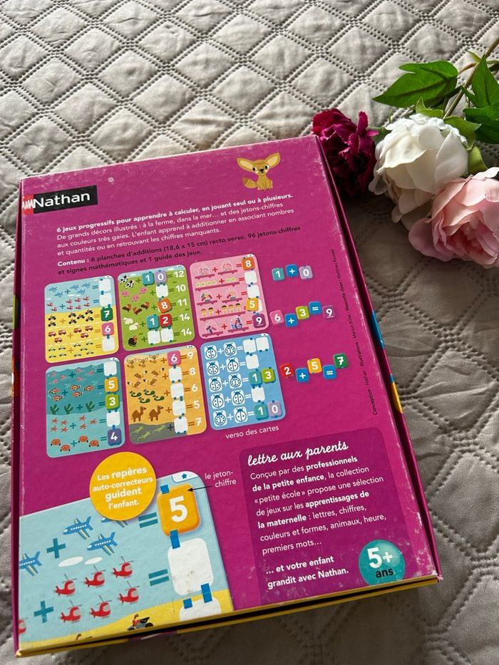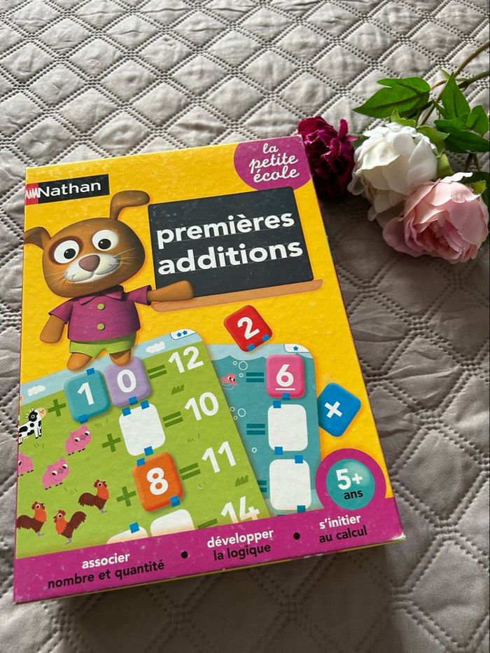 ✨Un jeu éducatif de la collection "La Petite École" de Nathan, conçu pour initier les enfants de 5 ans et plus (Grande Section Maternelle, CP) aux bases de l'addition et de la logique mathématique.✨