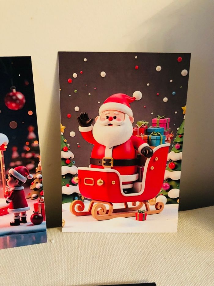 Lot de 5 cartes de vœux pour noël type carte postale Mot clé: père noël cadeau sapin voeu souhait fête de fin d’années meilleurs vœux Merry Christmas traîneau lutin