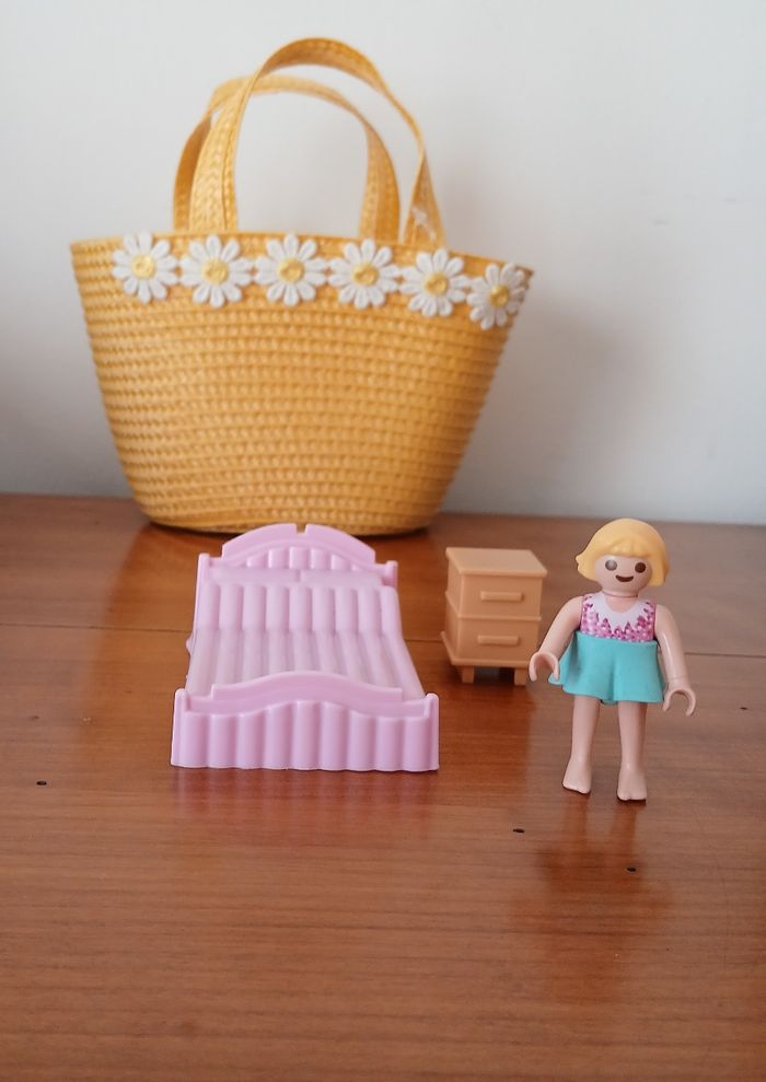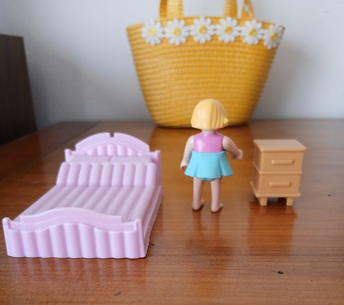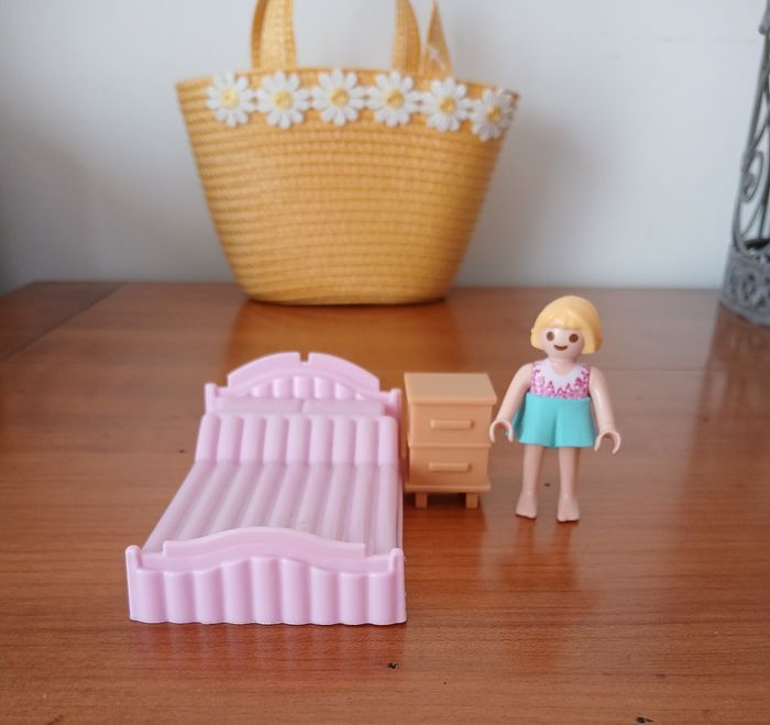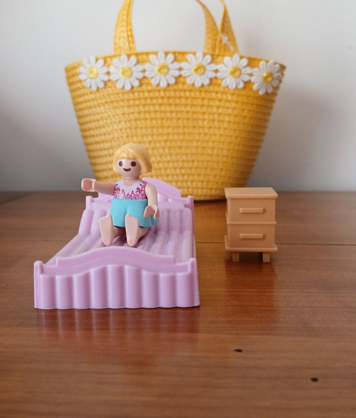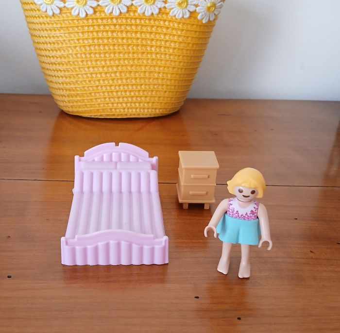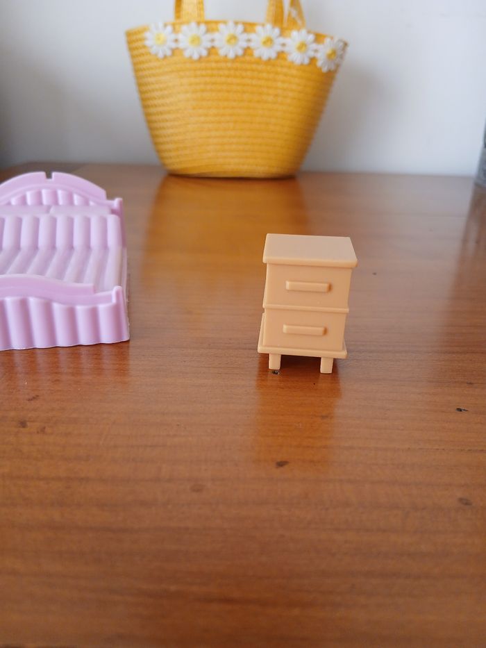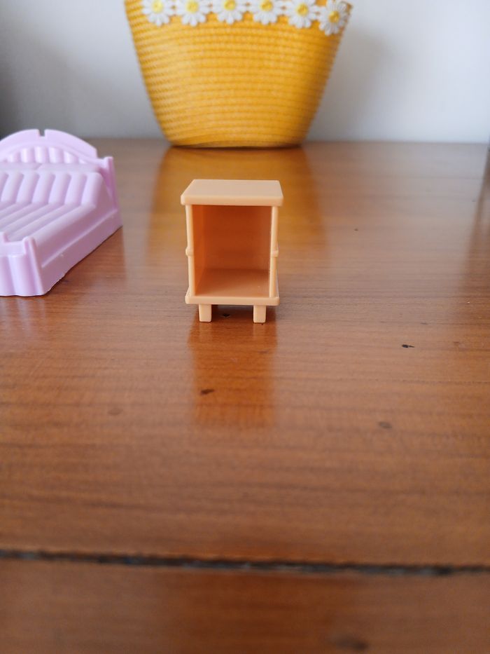Jouets miniatures/maison poupée: Lit+ Chevet+ Figurine
