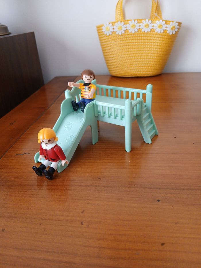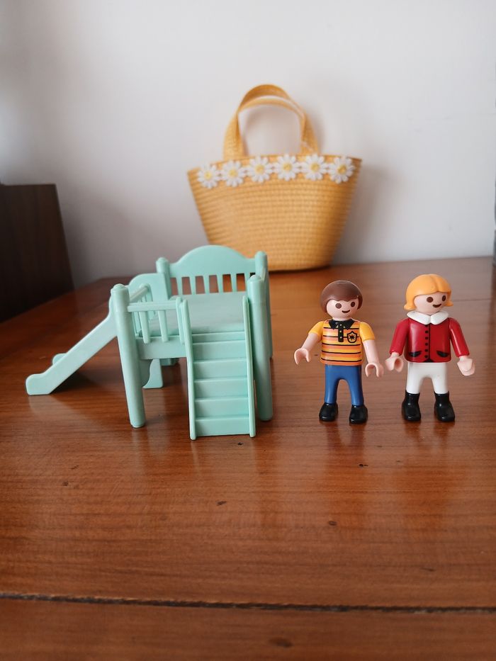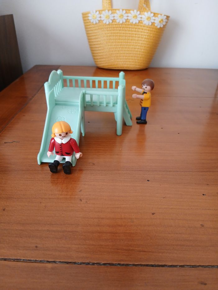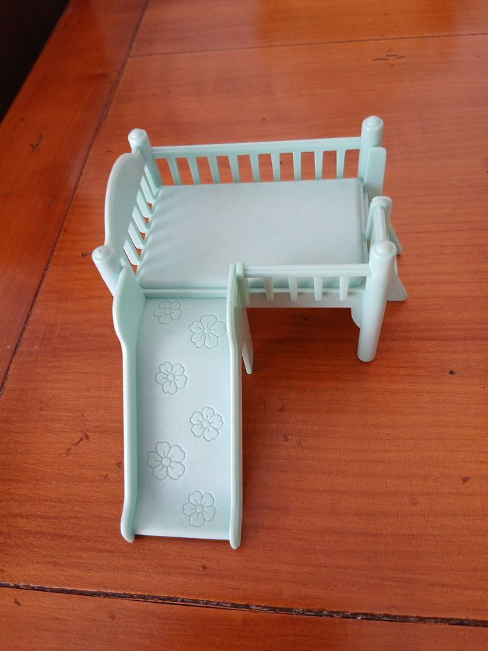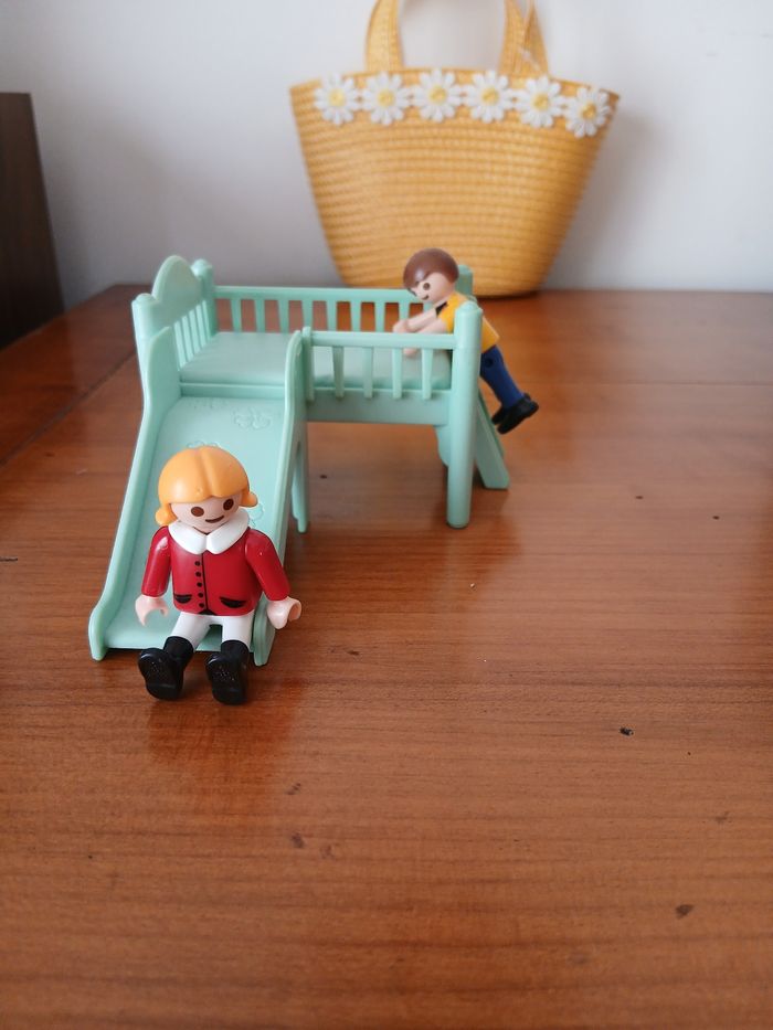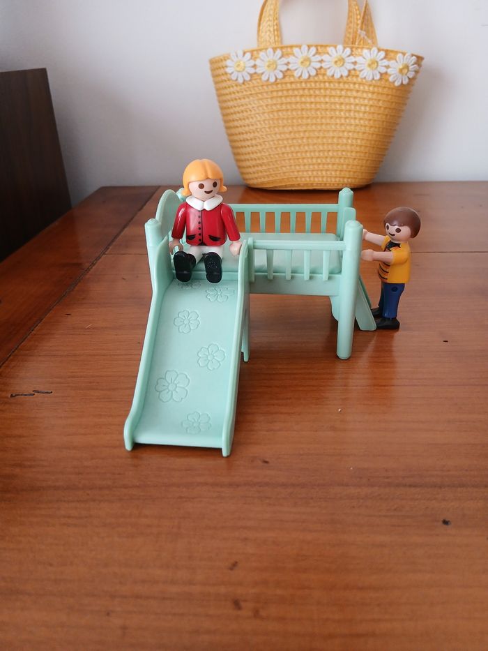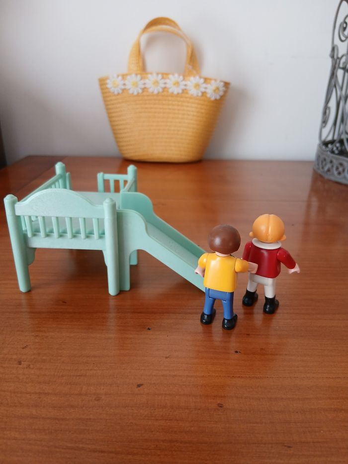 Jouets miniatures/maison poupée: Lit-toboggan + 2 figurines
