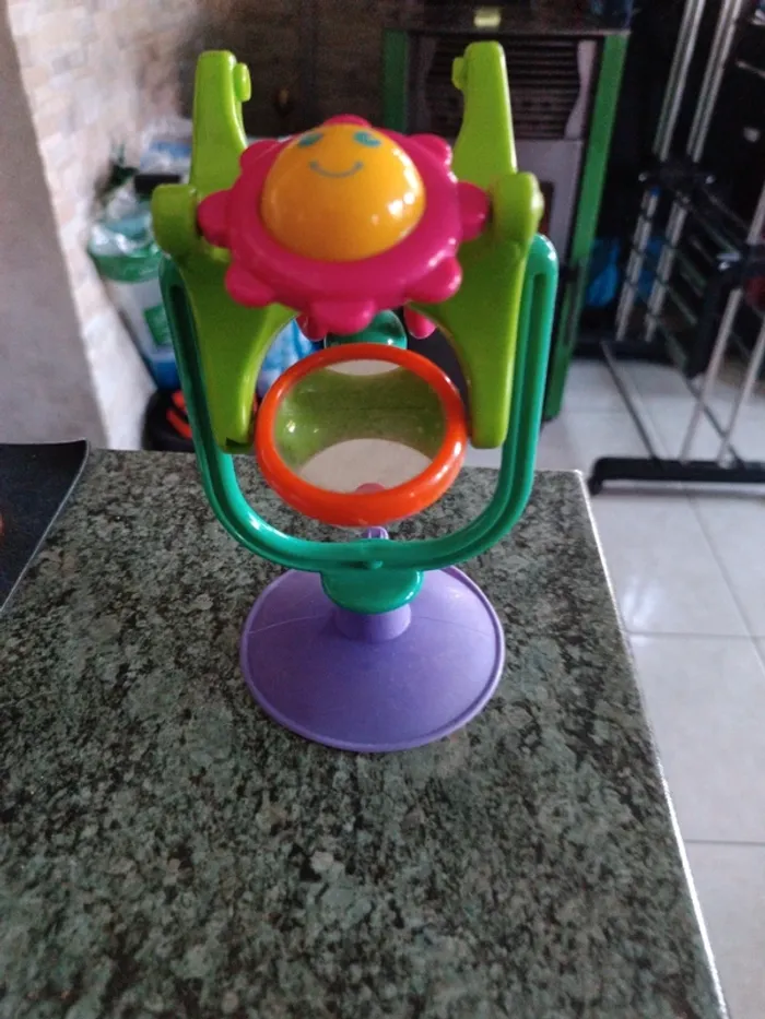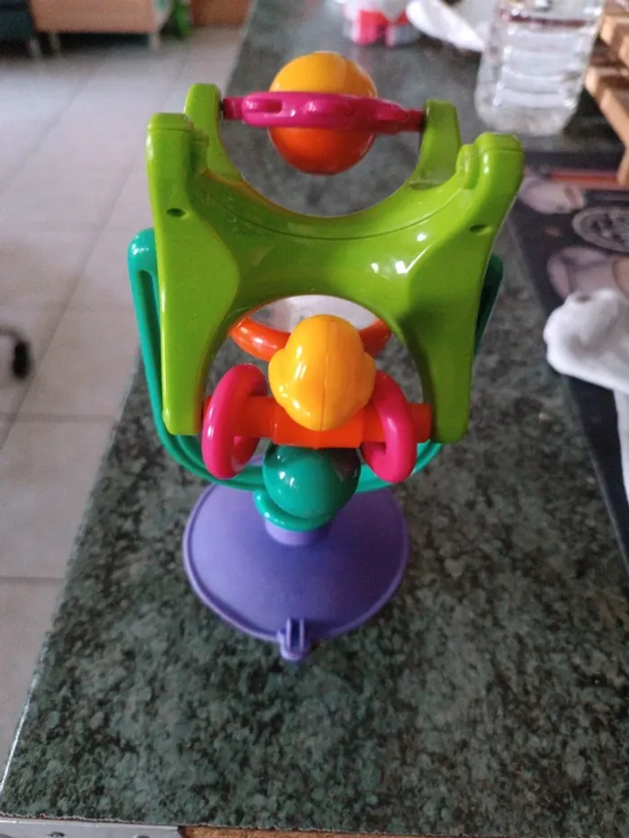Manège à ventouse pour chaise bébé. Manque 1 barre. Bon état.