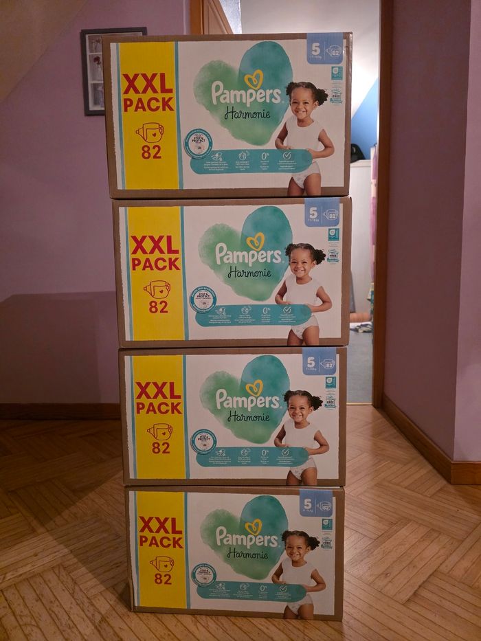 Lot de 4 cartons taille 5 pampers harmonie xxl soit 328 couches