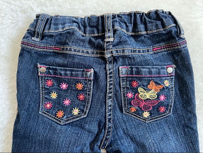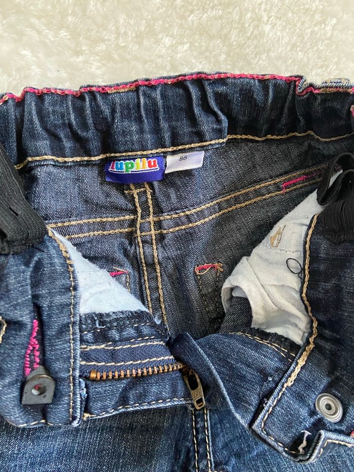 En très bon état Broderie sur les poches arrières et un petit papillon sur une poche avant Taille réglable avec des élastiques à l’intérieur de la ceinture 18 mois #jeans #jeansenfant #lupilu #lupilufille #18mois #pantalon18mois #pantalon18moisfille #pantalonenfant #fille #pantalonfille #tailleréglable