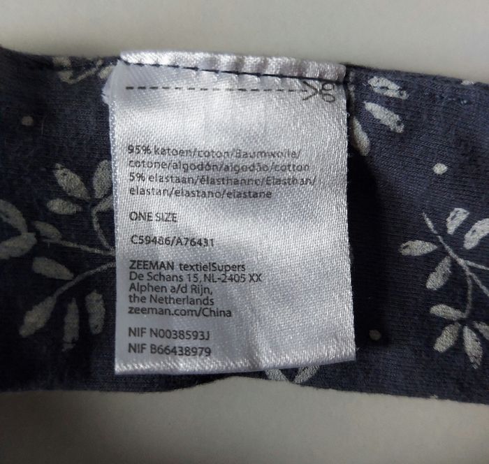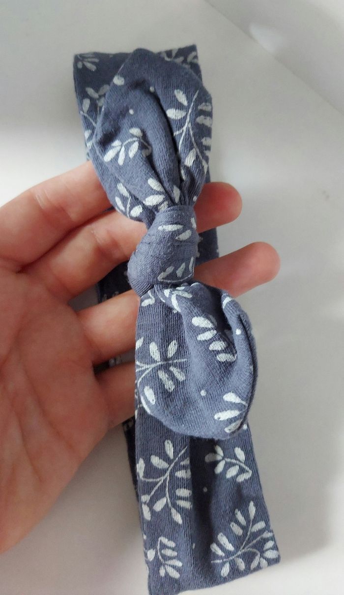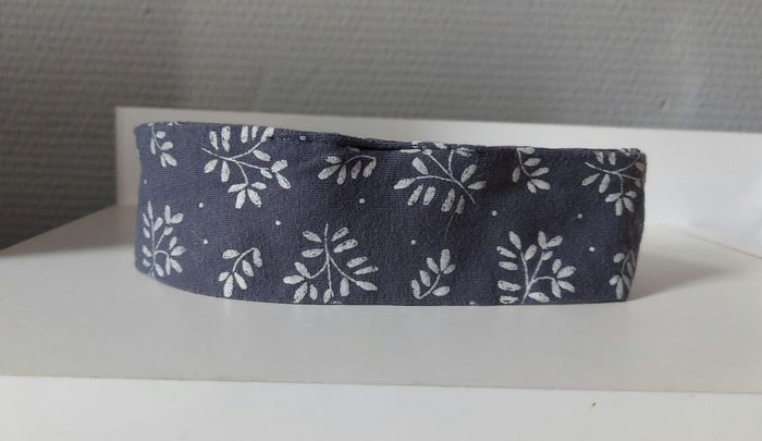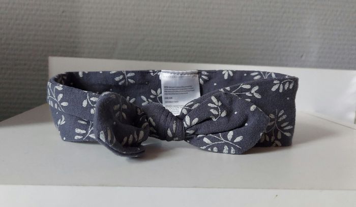 Je vends un bandeau pour bébé de couleur gris foncé avec des motifs (branches avec des feuilles et des petits points) venant de chez Zeeman. Taille unique. En très bon état.