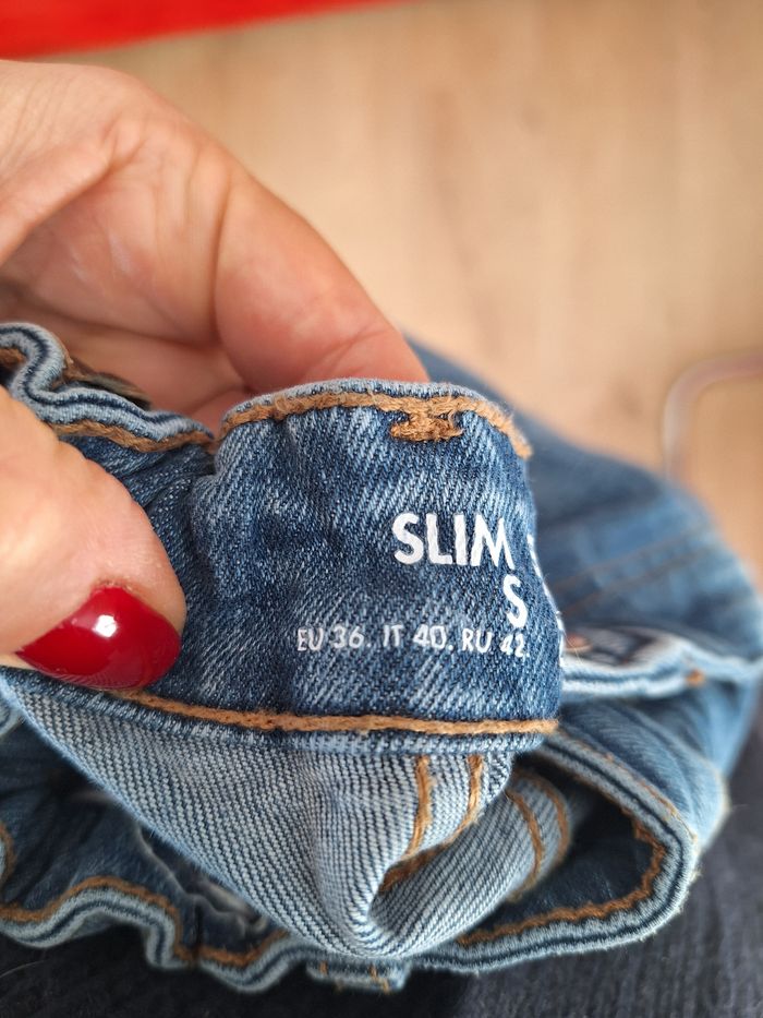 Jeans Slim taille S 36 bleu clair, très bon état avec élastique dans la ceinture intérieure