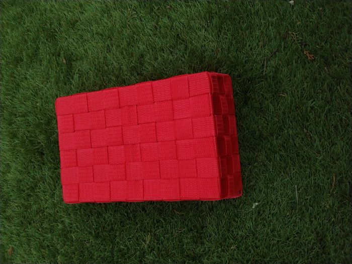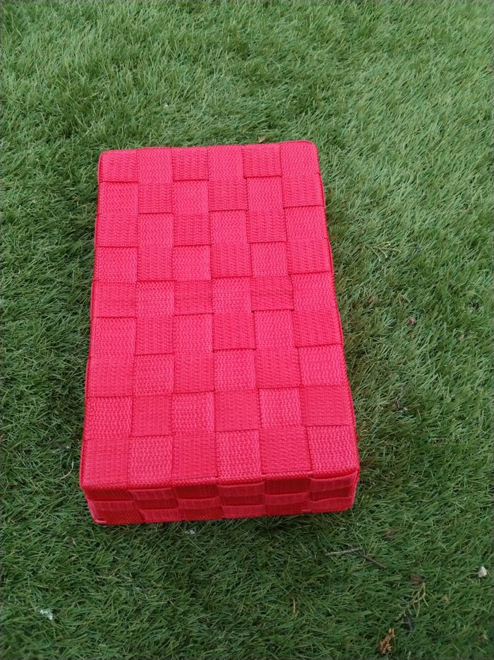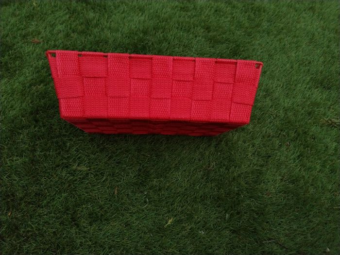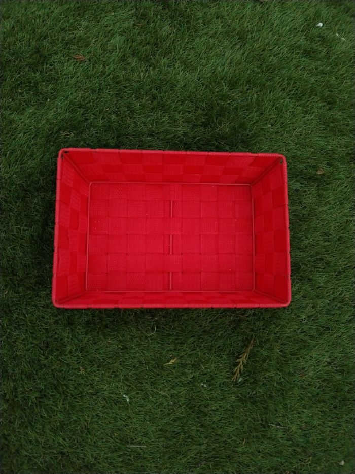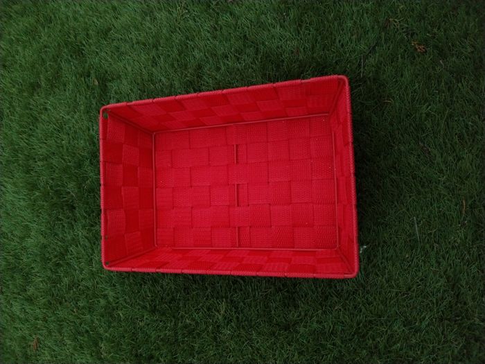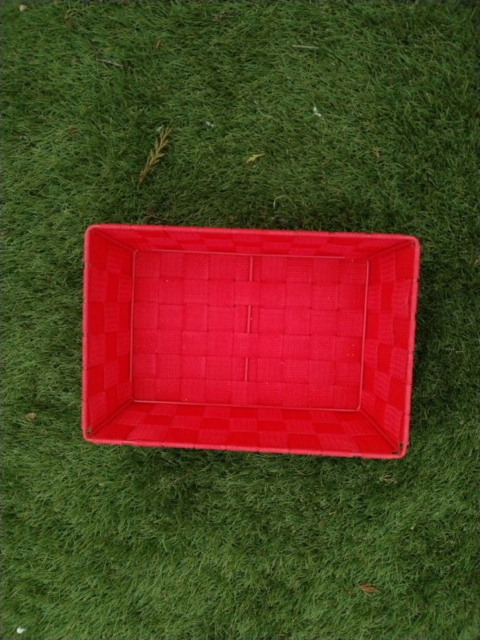Panier tressé (toile synthétique) pour présentation de gourmandises, Corbeille de présentation, Corbeille de fruits, forme rectangulaire 28 x 19 x 8 cm, base en fer, rouge ❤️ très solide 👍🎄🎅parfait pour garnir de chocolats, fruits, spécialités gourmandes, etc... 🎄🎅
