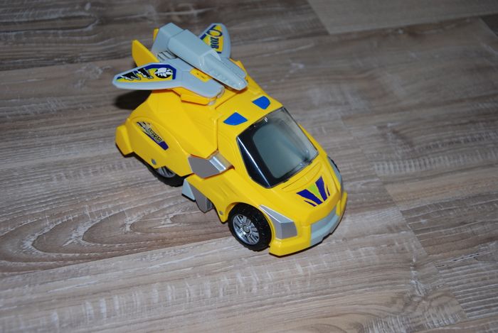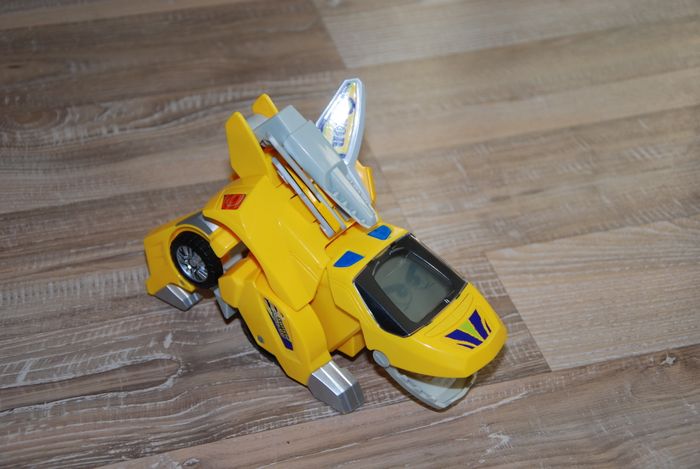 en très bon état fonctionne parfaitement voix française se transforme en stégosaure ! sons à chaque transformation. Différents affichages sur l’écran lcd (expressions du dino, pilote de course…). Age : 3 - 9 ans
