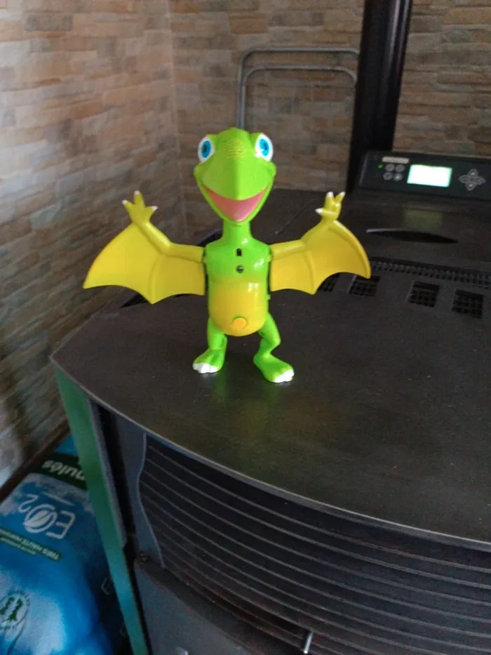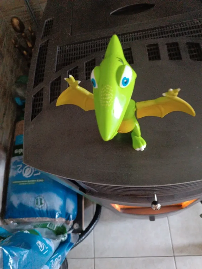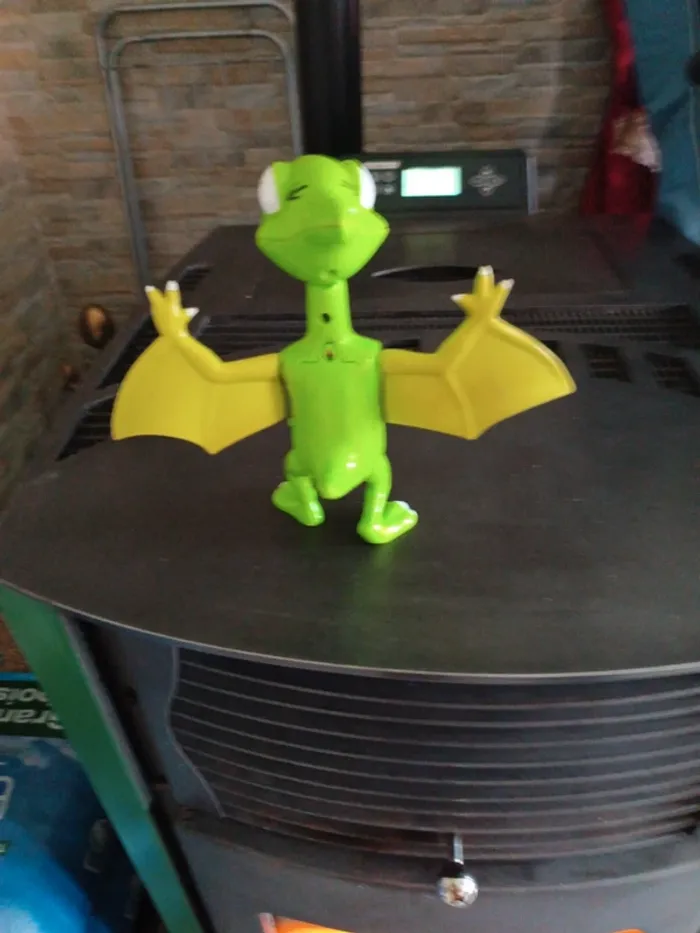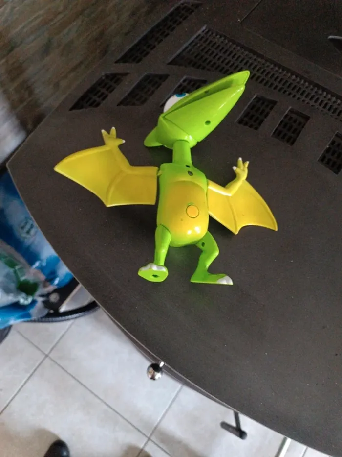 Dinosaure volant ptérodactyle. Hauteur 17 cm. Sans piles. Ne fonctionne plus. Juste pour jouer. Bon état.