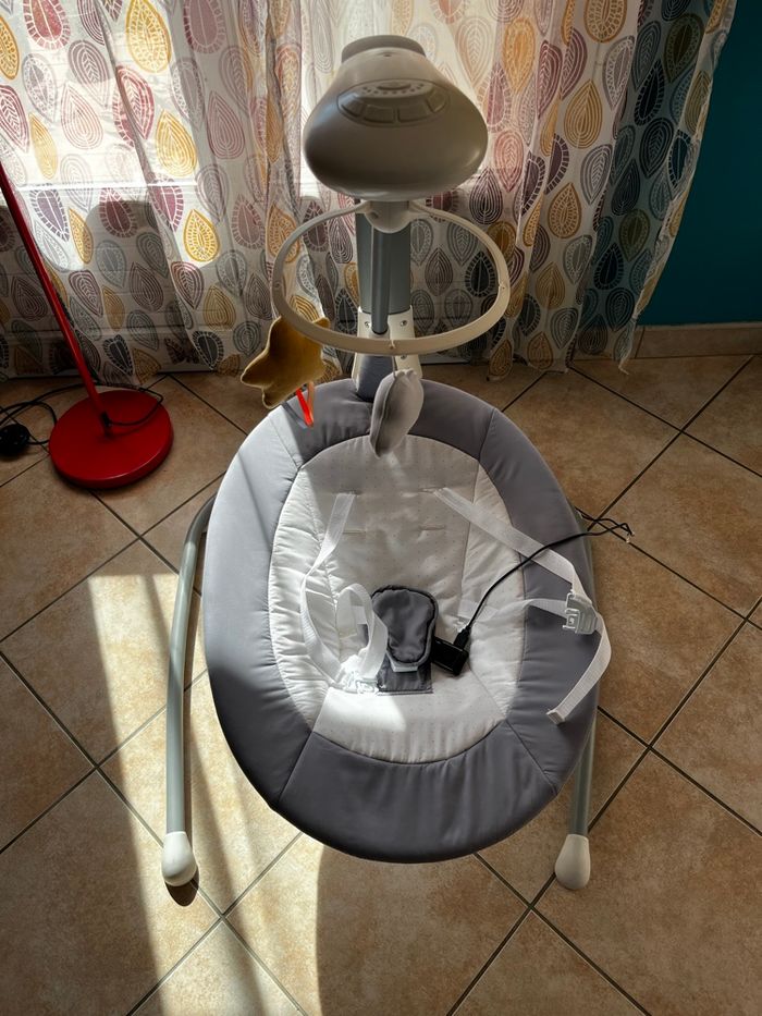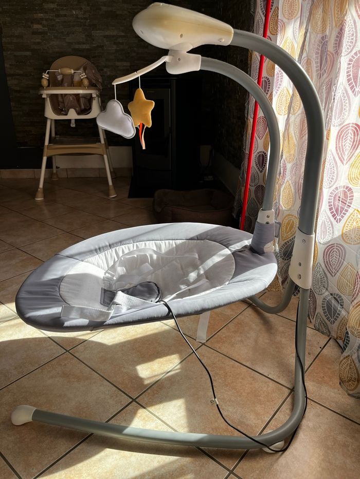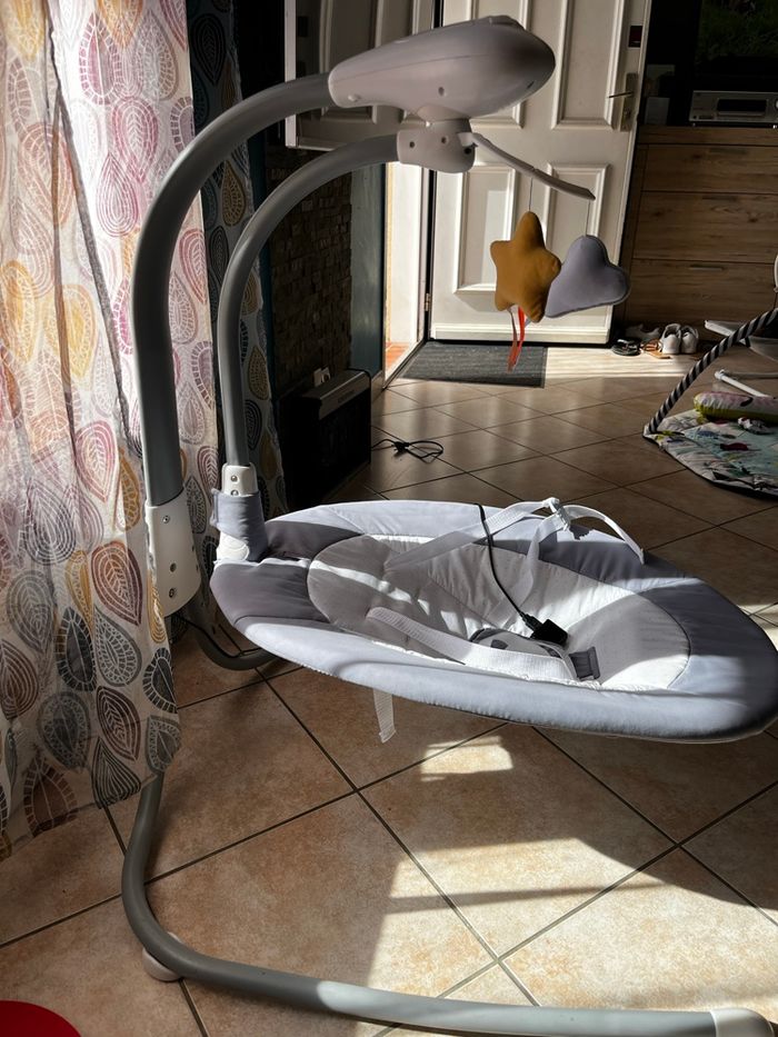Balancelle de la marque Verbaudet. Très bon état. Siège rotatif (gauche, milieu, droite) et inclinable (enfant assis ou allongé) 5 vitesses de balancement programmables 12 mélodies relaxantes, volume de son réglable Harnais de sécurité pour bien maintenir bébé dans le siège Équipée d'un système de programmation: 3 durées de balancement au choix Arche d'éveil amovible Jouets amovibles pour un entretien aisé (passent en machine)