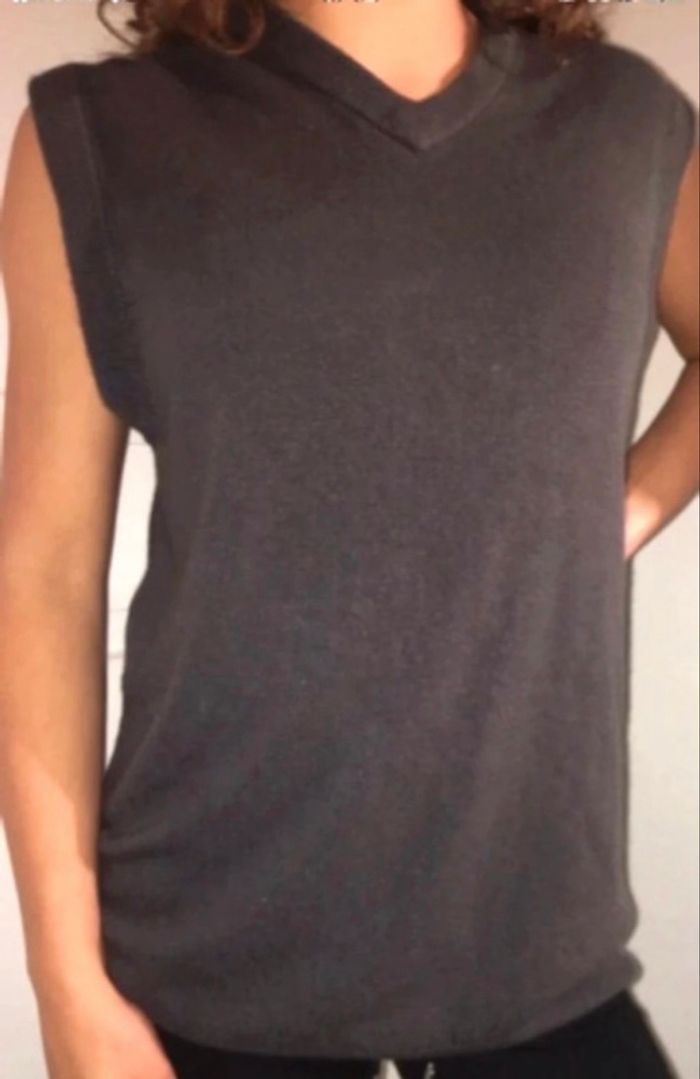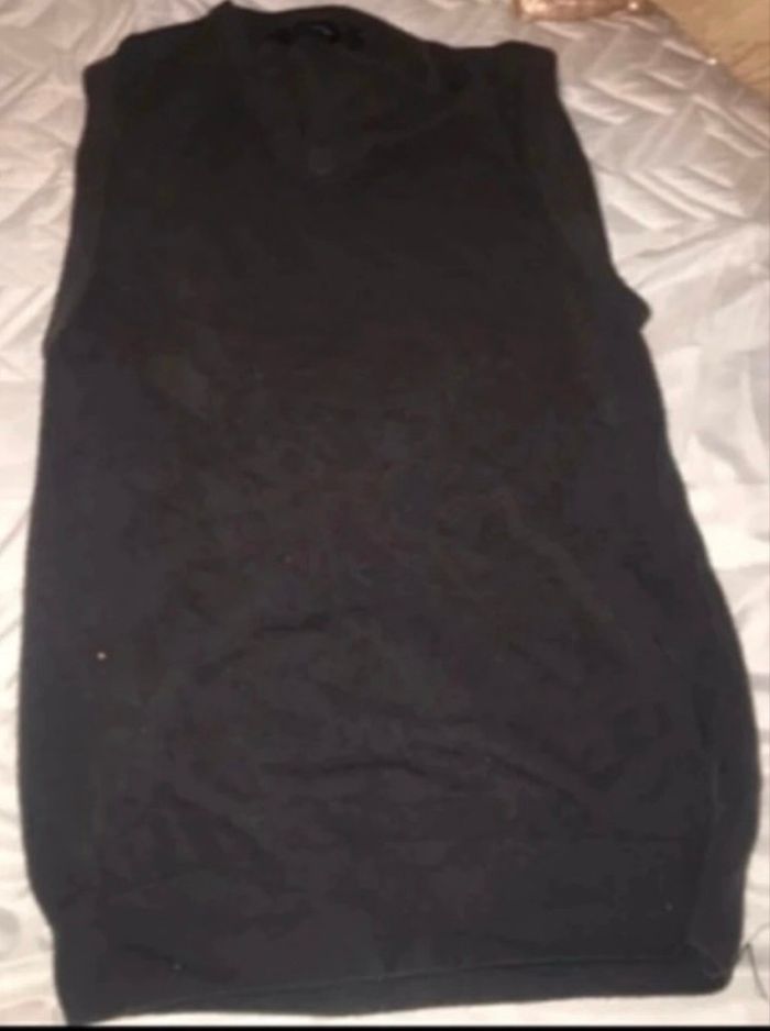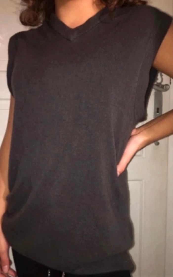Pull stylé sans manche col v couleur gris taille s bon état idéal avec une chemise blanche dessous par exemple
