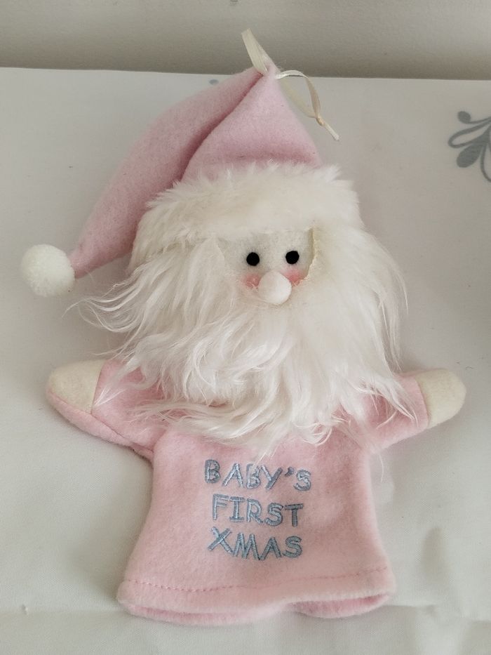 Père Noël à suspendre rose et blanc m'y first Xmas