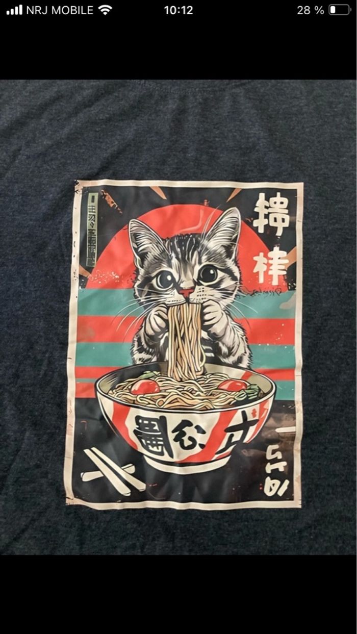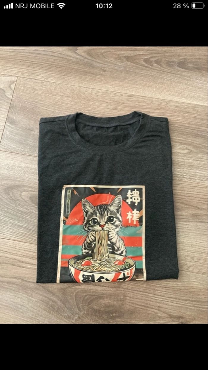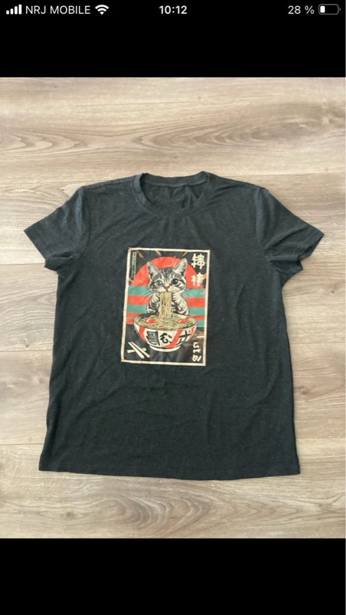 Joli T-shirt neuf jamais porté acheté pour ma fille mais pas la bonne taille. Taille L Gris foncé Imprimé asiatique avec chat 🐈 Envoi rapide et soigné 😊🌺