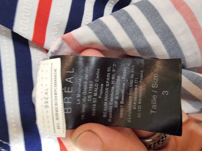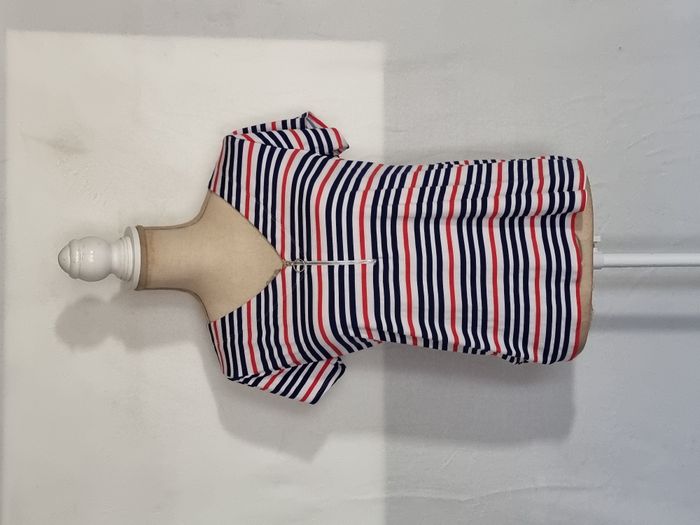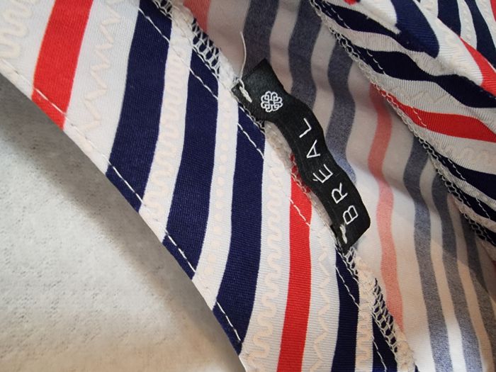 T-shirt femme Bréal blanc rayé rouge et bleu marine taille L. En très bon état. Envoi rapide et soigné. Négociable.