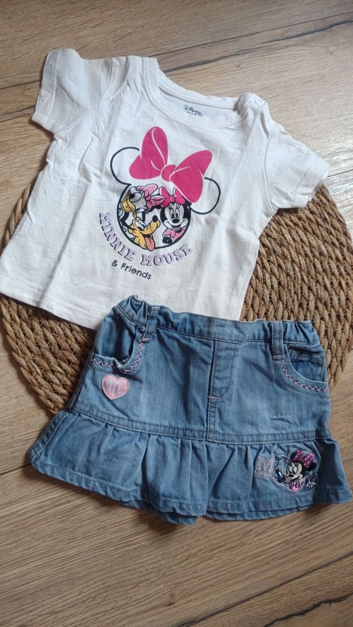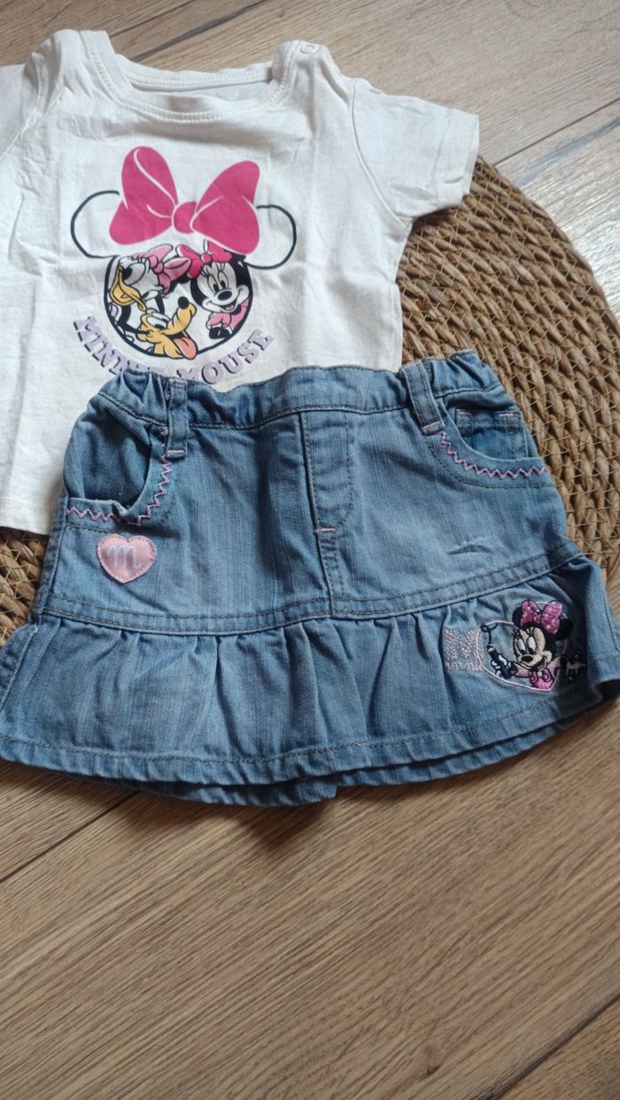 Ensemble t-shirt manche courte et jupe en jean fille 9 mois Disney Minnie - photo numéro 1