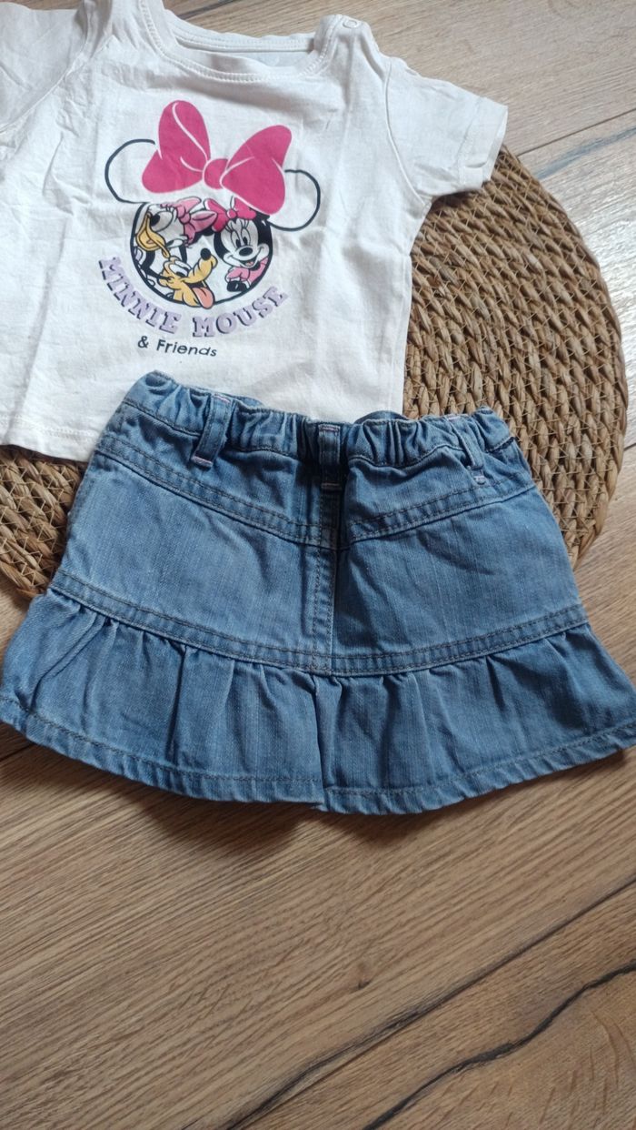 Ensemble t-shirt manche courte et jupe en jean fille 9 mois Disney Minnie - photo numéro 2
