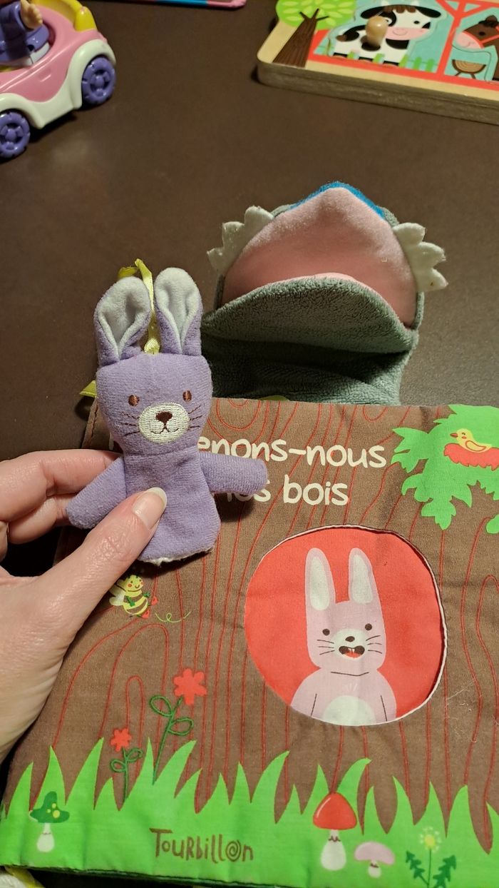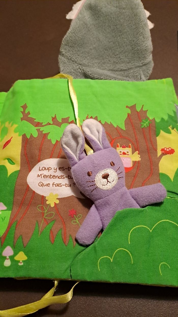 avec marionnette Loup et petit doudou que l on déplace tout au long de l histoire avec bruitage(scratch, papier froissé)
