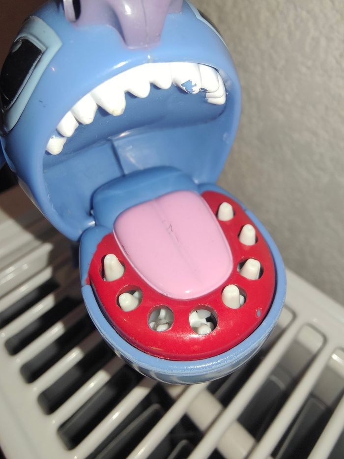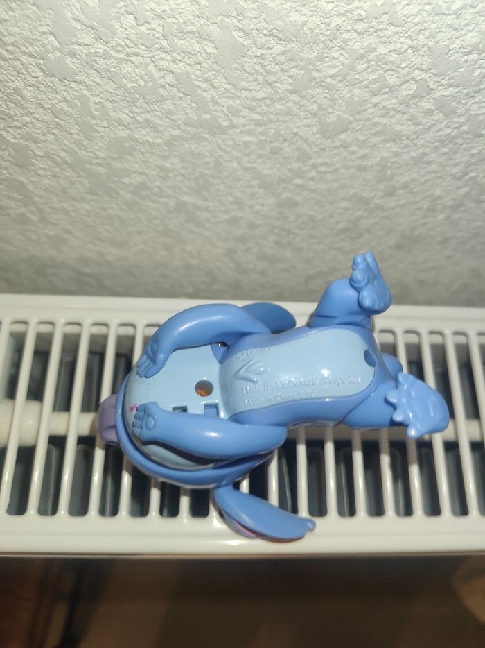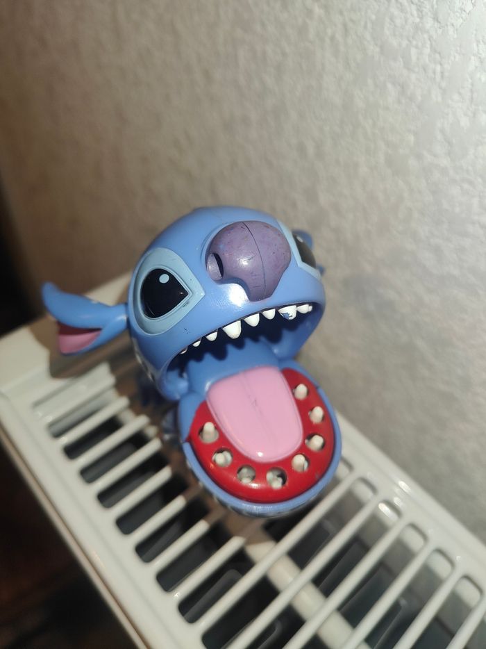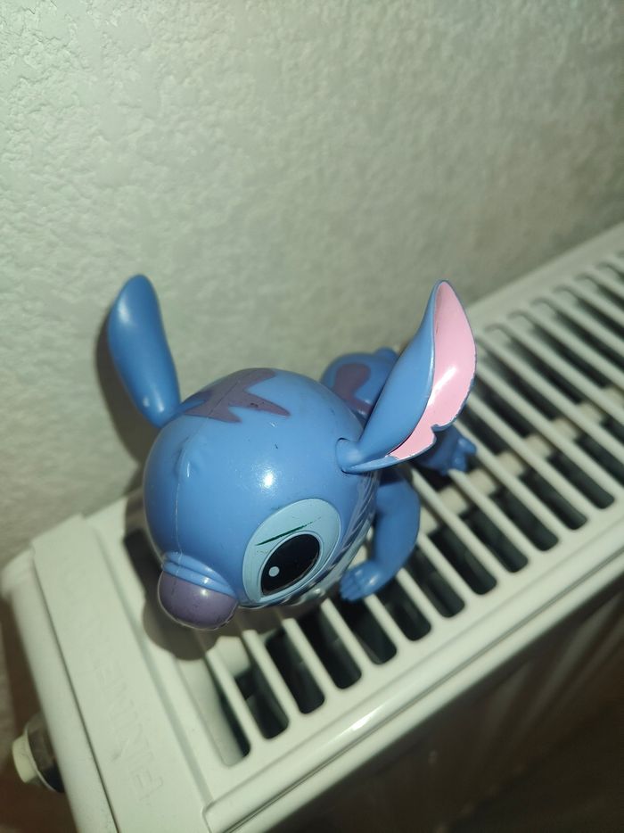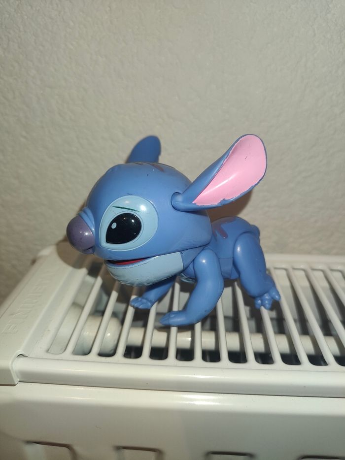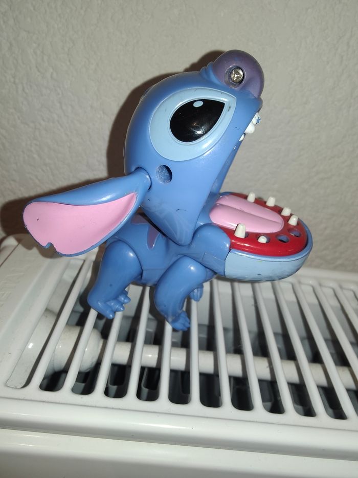 Figurine Stitch Disney McDonald's 2002 Lilo et Stitch monstre bleu. État correct, peinture usée, quelques dents enfoncées (voir photos).