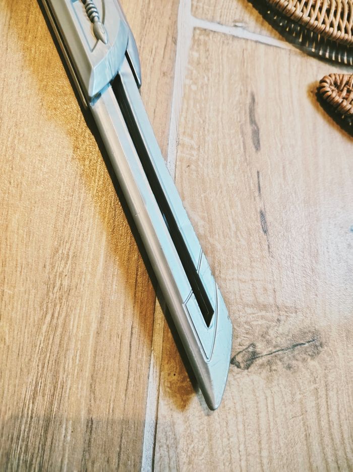🎀1 led sur 4 ne fonctionne plus. Lame qui à du mal à sortir avec le bouton mais vous pouvez la tirer avec la main en appuyant sur le bouton voir les diverses photos