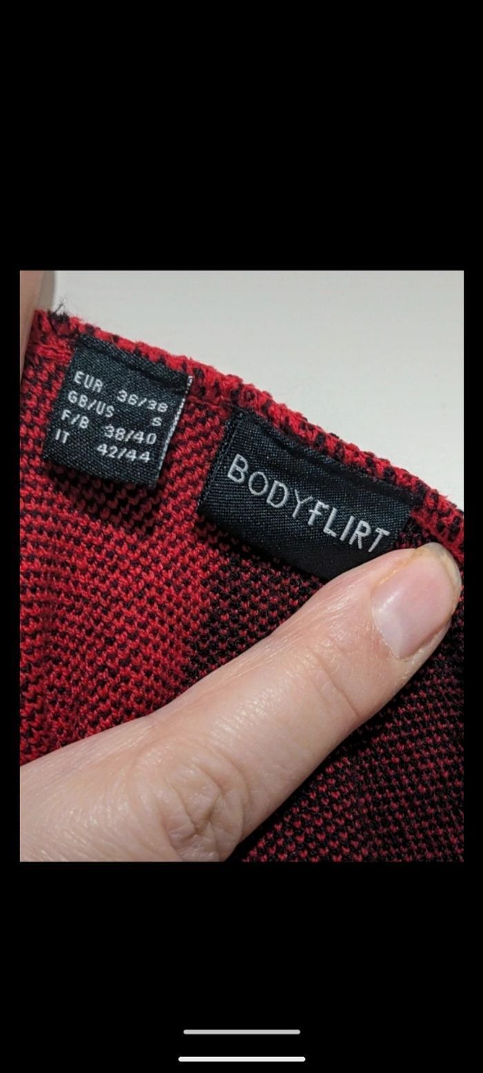 Beau pull hiver Bodyflirt rouge et noir. Taille 38