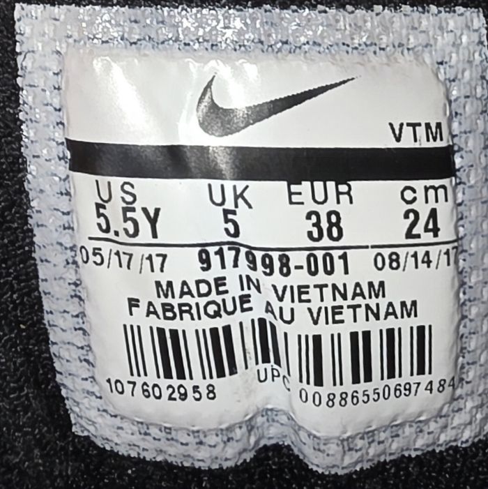 ​Modèle : Nike Air Max 97 (Grade School - GS) ​Coloris : Noir, gris anthracite et blanc (Look polyvalent et facile à assortir). ​État : Occasion, mais très bien entretenu (Veuillez consulter les photos pour les détails). ​Taille : EUR 38 (Équivalent à US 5.5Y / UK 5 / CM 24). ​Code Produit Authentique : 917998-001 (Gage d'authenticité, visible sur l'étiquette). ​Confort Ultime : Dotée de l'unité Max Air visible sur toute la longueur, elle offre un amorti léger et réactif pour un confort exceptionnel au quotidien. ​Pourquoi choisir cette paire ? ​La Air Max 97 est plus qu'une chaussure ; c'est une pièce d'histoire. Ce coloris discret est parfait pour un usage quotidien, ajoutant une touche de style rétro-futuriste à n'importe quelle tenue, decontractée ou plus travaillée. Elles sont robustes, durables et prêtes pour une seconde vie à vos pieds. ​➡️ Authenticité Garantie : Le code produit et les détails de l'étiquette (voir photo) confirment l'authenticité et la provenance Vietnamienne de la paire. ​📷 Conseils pour les Photos ​(N'oubliez pas d'indiquer que les photos montrent l'état actuel de l'article) : ​Les photos sont contractuelles. ​Elles mettent en évidence l'état général des baskets, l'intégrité de la bulle d'air, et les détails de l'usure de la semelle. ​L'étiquette de taille et le code produit sont clairement visibles pour attester de l'authenticité. ​💰 Prix et Modalités ​Prix : [Insérez votre prix ici] ​Localisation : [Votre ville ou région] ​Livraison : Expédition possible via [Nom du service d'expédition] ou remise en main propre. Les frais d'envoi sont à la charge de l'acheteur. ​Paiement : Paiement sécurisé via [Nom de la plateforme de vente/Paiement en espèces]. ​❗ Premier arrivé, premier servi. N'hésitez pas à me contacter pour toute question supplémentaire ou photo complémentaire. ​🔥 Ne ratez pas cette occasion de faire vôtre cette pièce mythique de la collection Air Max ! 🔥