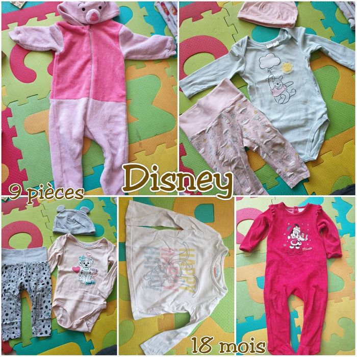 Lot vêtements bébé fille 18 mois 9 pièces Disney pyjamas, bodies