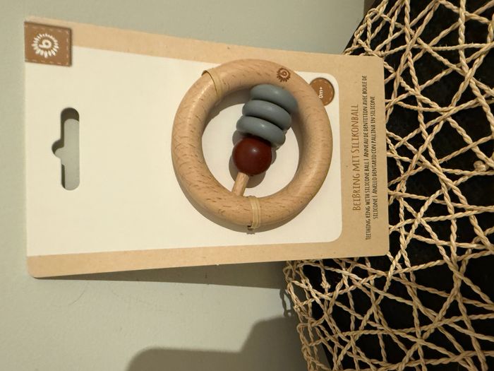 Bieco Anneau de dentition en bois pour bébé avec silicone, dès 0 mois, 8 cm, gris Aide à la dentition pour bébé Jouet de préhension pour bébé en bois silicone Jouet de motricité pour bébé