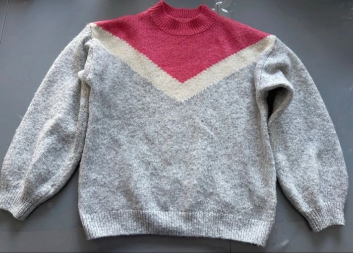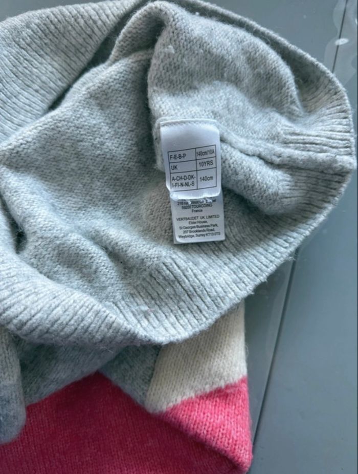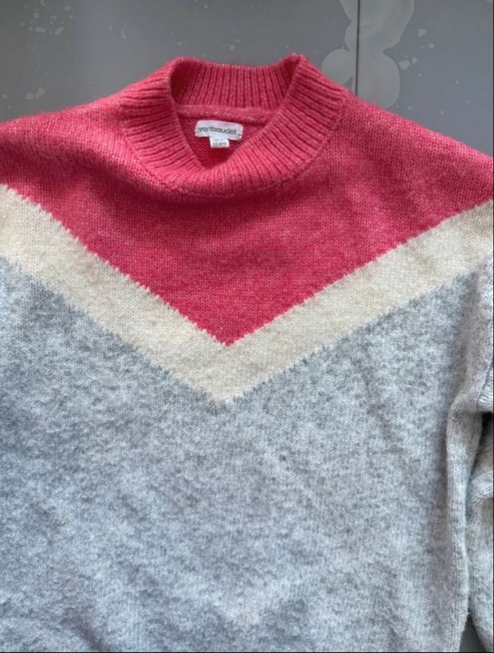 Pull fille Vert Baudet T 10 ans gris et rose Très bon état
