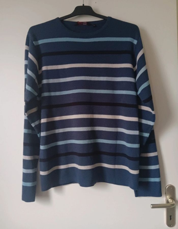 Pull Rayé Homme M Bleu "Cutting Edge" 100% Acrylique - photo numéro 1
