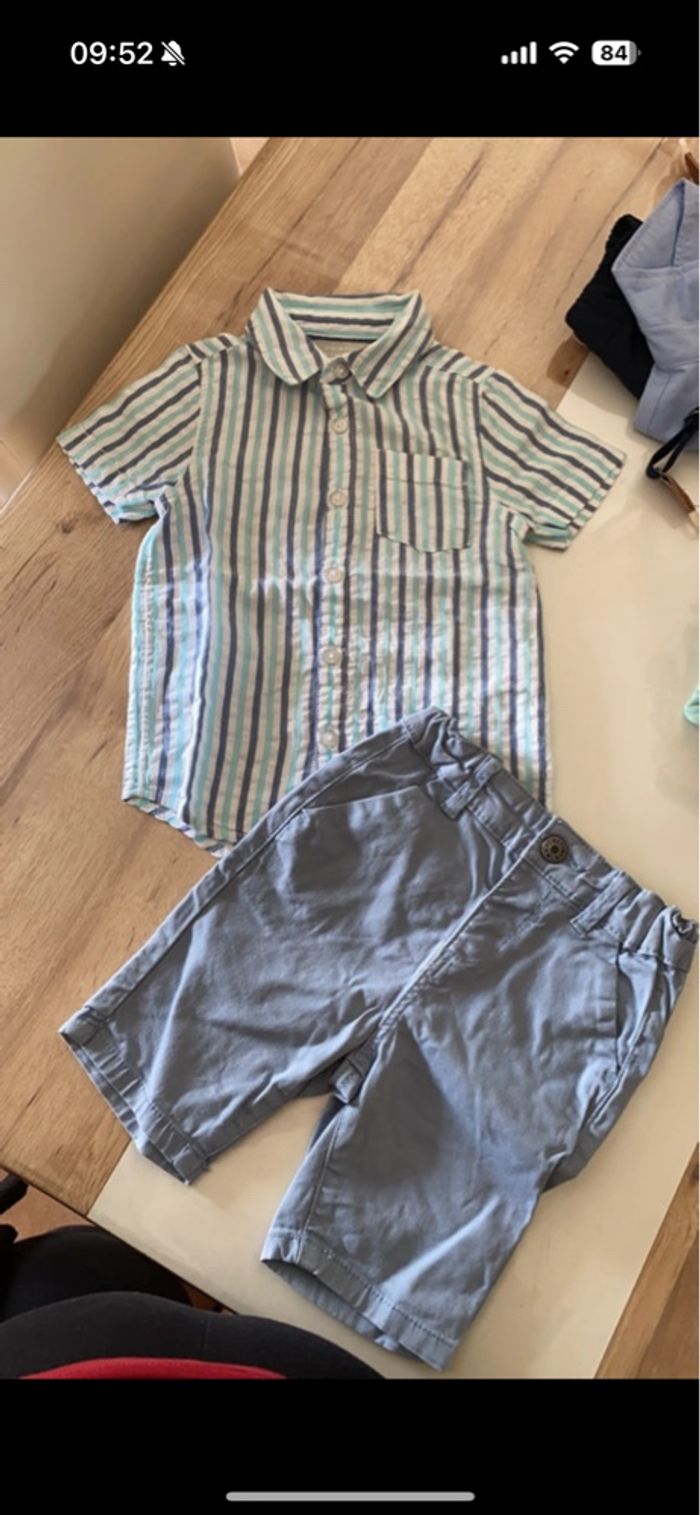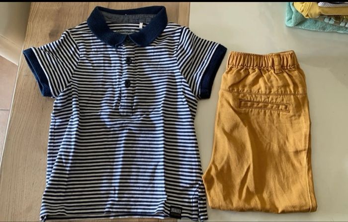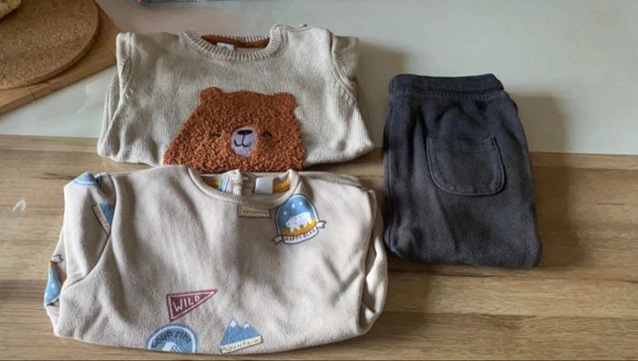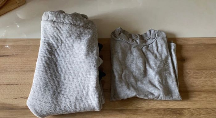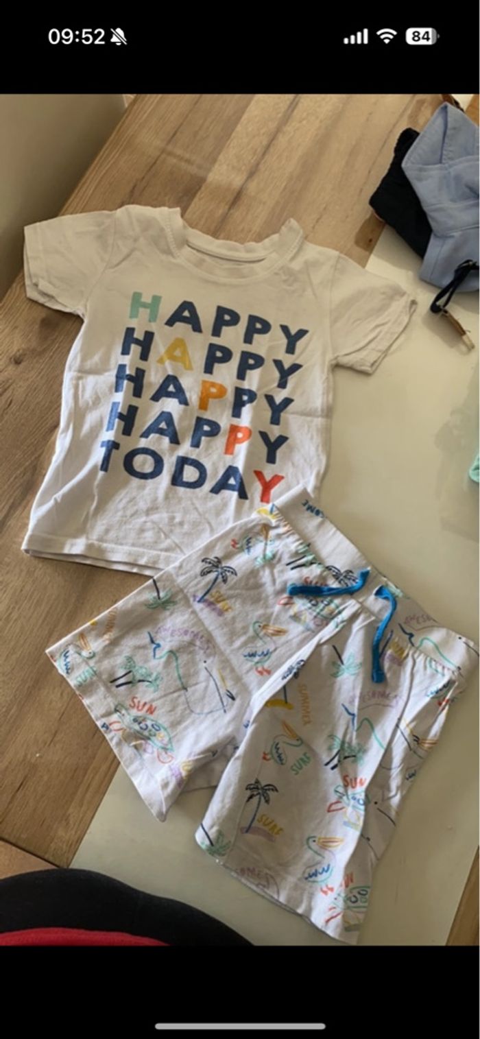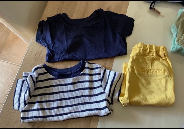 Très bon état mais quelques petites imperfections : micro tache sur le short jaune mais qui ne se voit pas quand on replie, 2/3 vêtements boulochent légèrement.