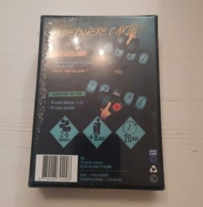 Jeu " La Suite Infernale" neuf sous cellophane d'origine. 100% authentique en français. Découvrez La suite infernale, un jeu de cartes palpitant où stratégie et rapidité se rencontrent pour un moment de pur plaisir en famille ou entre amis. La suite infernale vous invite à entrer dans un monde ludique où chaque carte peut changer le cours de la partie. Ce jeu promet des rebondissements et des stratégies inattendues, alors préparez-vous à vivre des moments intenses et mémorables. Dans La suite infernale, chaque joueur tente de constituer une suite numérique de 1 à 10 devant lui. A son tour, le joueur pioche une carte et peut soit la placer dans sa suite, soit utiliser une carte spéciale pour perturber ses adversaires. Les cartes spéciales permettent notamment de bloquer un adversaire, d'échanger des cartes ou même de provoquer une rotation des places autour de la table. Les joueurs peuvent également se défendre contre les attaques grâce à des cartes de contre. Le jeu alterne ainsi entre phases de construction de suite et moments d'actions stratégiques. La partie se termine dès qu'un joueur parvient à compléter sa suite de 1 à 10. Pour l'emporter, les joueurs devront faire preuve de tactique en choisissant le bon moment pour utiliser leurs cartes spéciales tout en protégeant leur progression. En mode équipe, la victoire est partagée lorsqu'un des coéquipiers complète sa suite, ajoutant ainsi une dimension collaborative à ce jeu déjà riche en rebondissements.