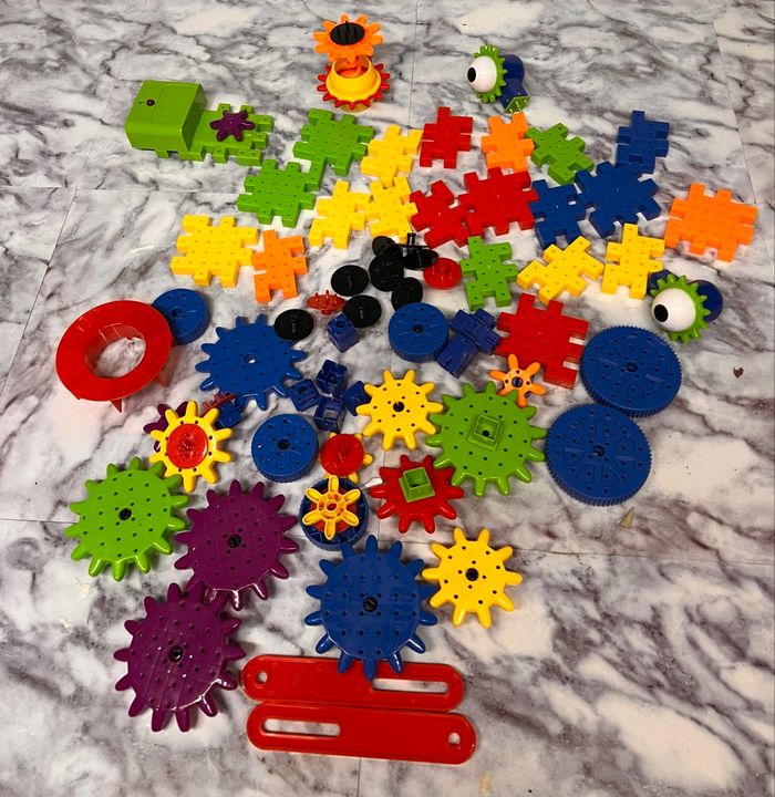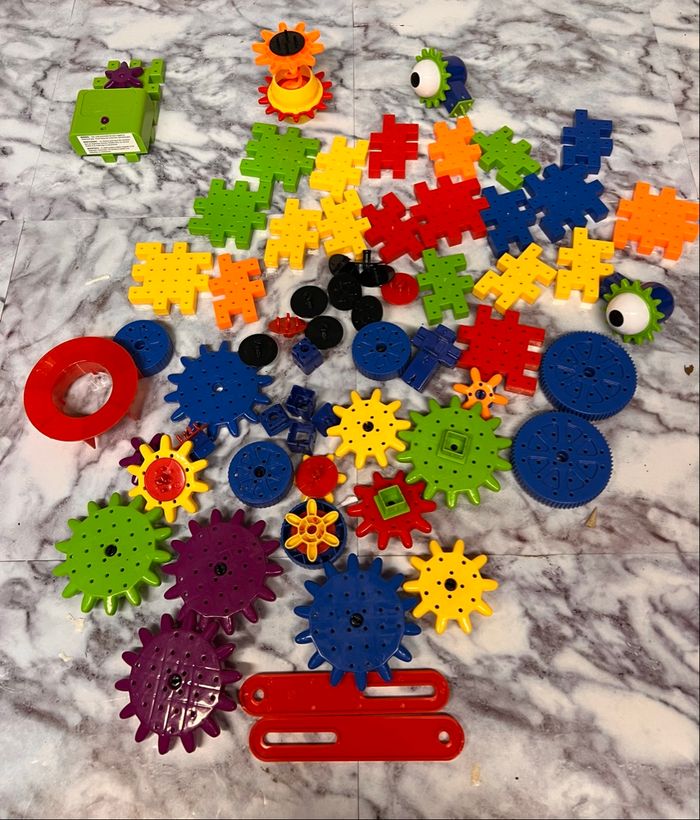 Jeu de construction d’engrenage avec 1 moteur Encourage la créativité et la pensée imaginative Développe la motricité fine