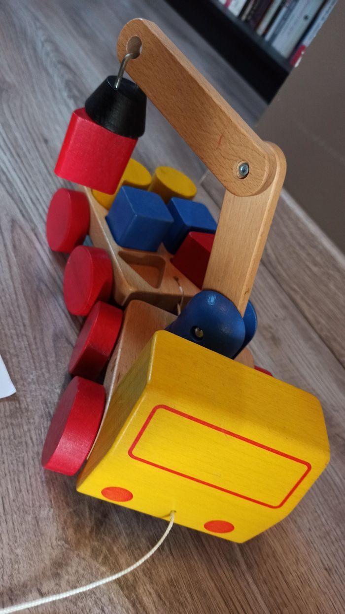 Camion en bois à tirer avec cubes magnétiques