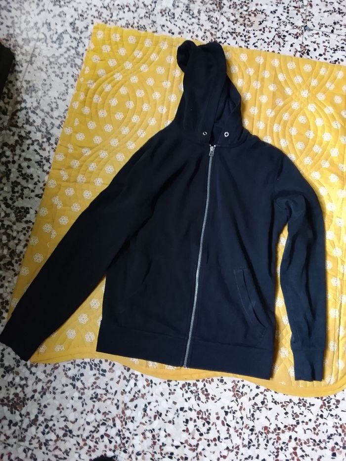 Bonjour, très belle veste a offrir pour Noël de la marque Kiaby en taille S en noir. Deux poches devant. Fermer par fermeture éclair. 100% polyester. En très bon état et sans étiquette : hauteur devant : 63cm, largeur: 23cm. Hauteur manche : 60cm, largeur : 15cm. Pensez à vos cadeaux de fin d'année.