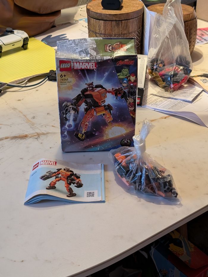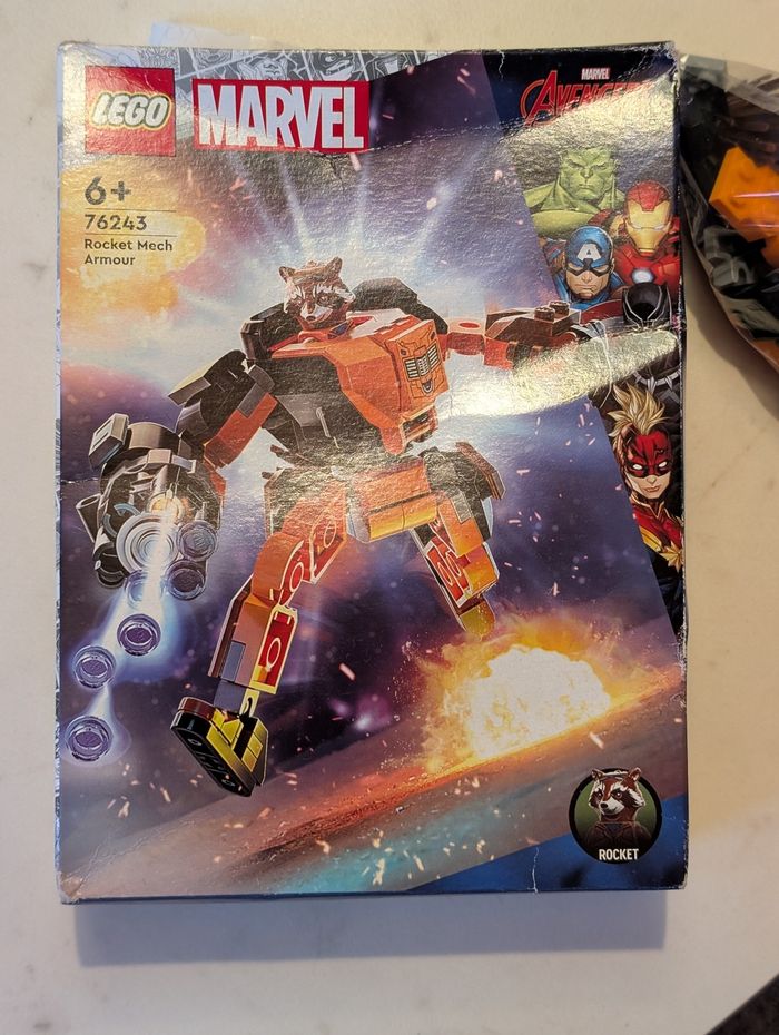 Je vends ce set LEGO Marvel 76243 - Rocket Mech Armour, un jeu de construction pour les fans de Marvel.