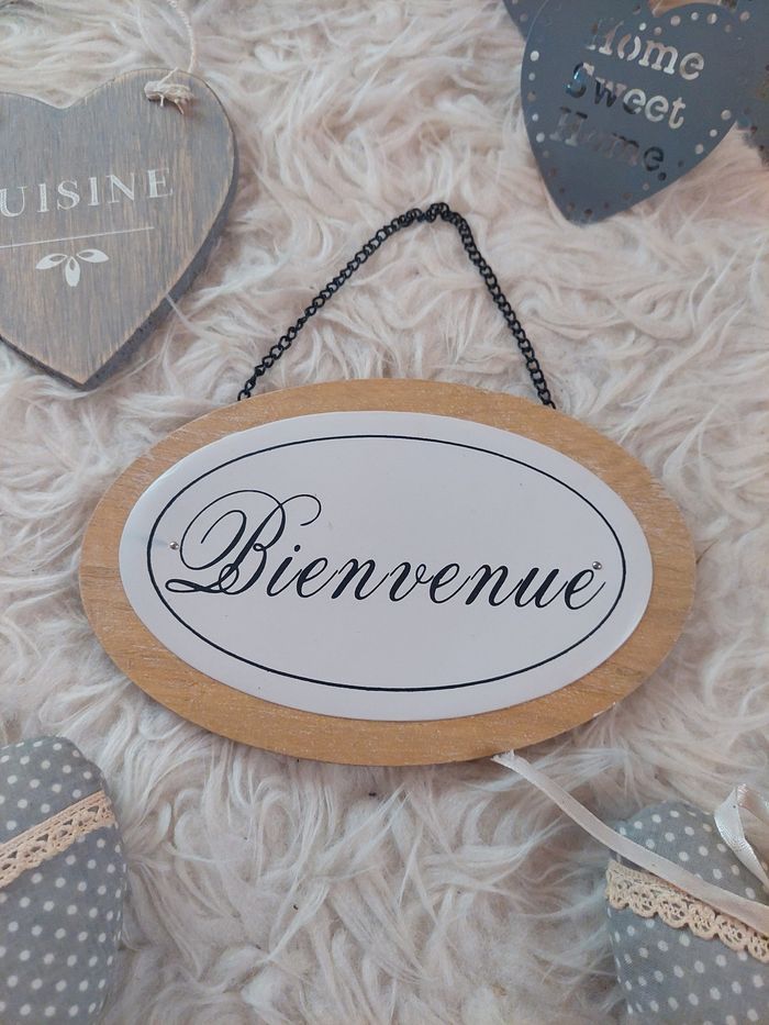 - une plaque de porte ovale avec écrit dessus "Bienvenue", 12.5*19.5cm TBE