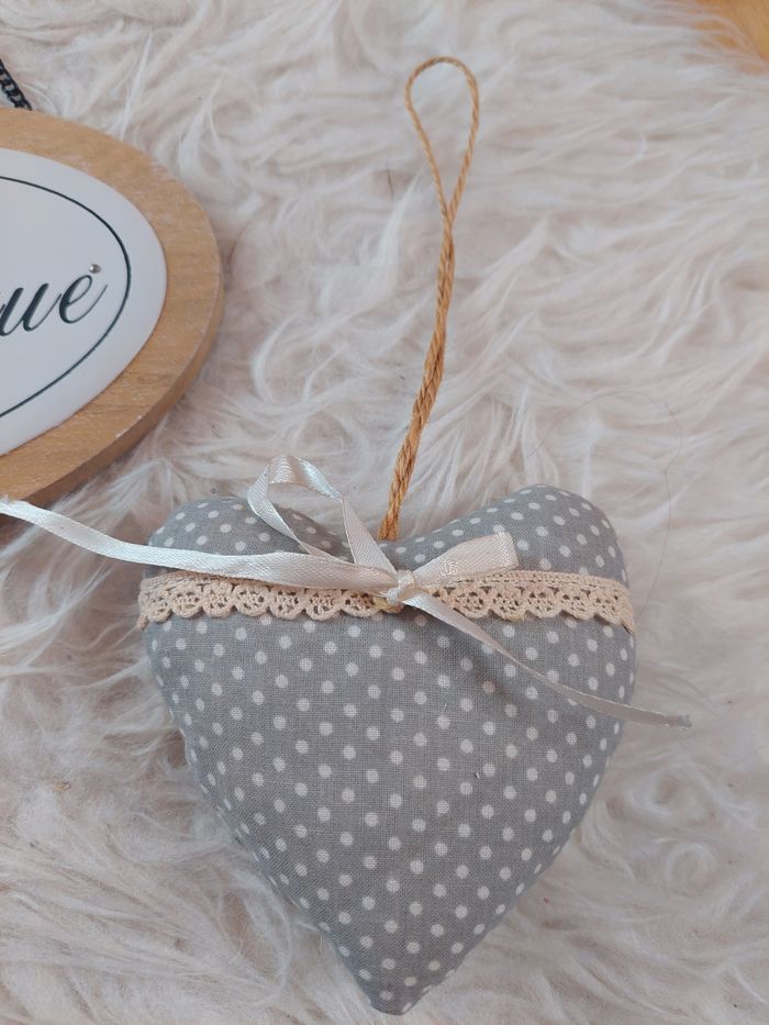 - 2 cœurs en tissu à suspendre, un noeud s'est décollé sur un