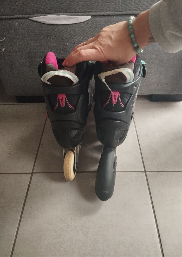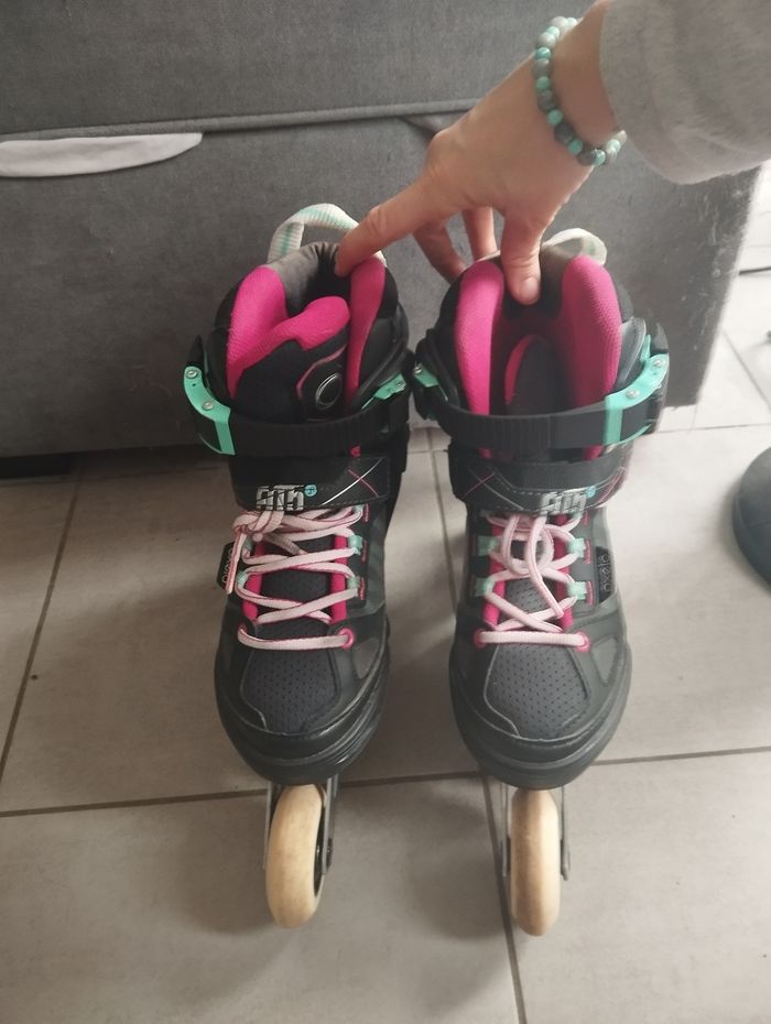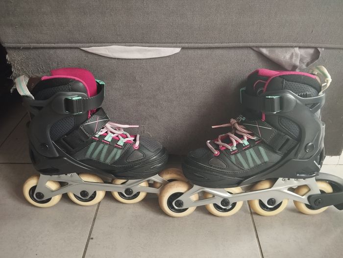 Roller fit 5 en parfait état utilisé quelques fois réglable stable . Roue gomme avec une bonne adhérence et sont super confortable. Prix d'achat :60€
