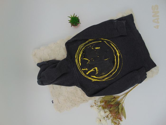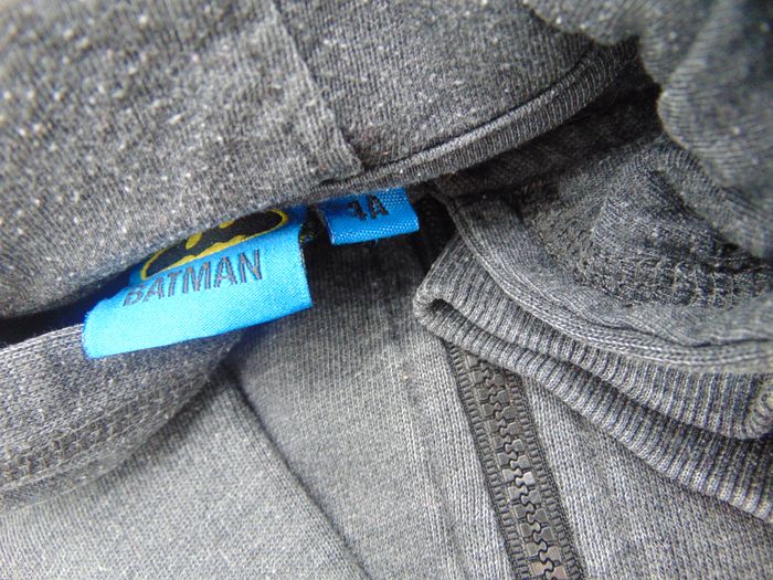 - A capuche - Zippé - Couleur gris foncé - Dessin Batman jaune dans le dos et devant - Décoration sur la capuche - Aucune tâche ni trou
