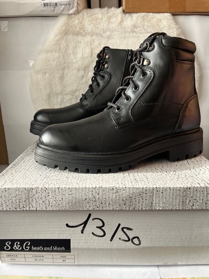 Bottines noires en cuir pointure 44 Lacets + fermeture éclair  Neuves - photo numéro 1