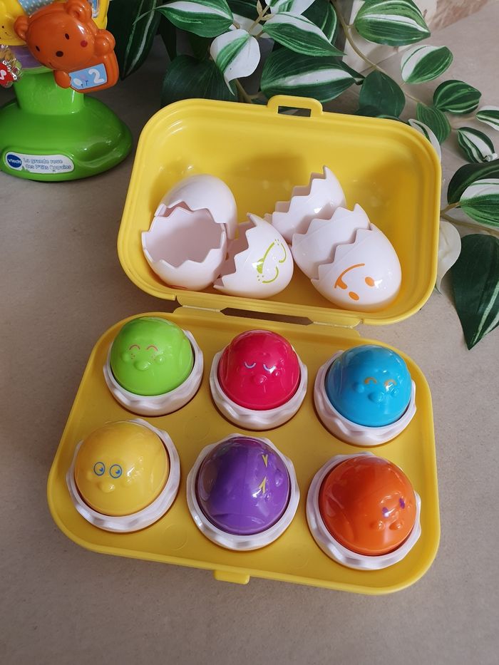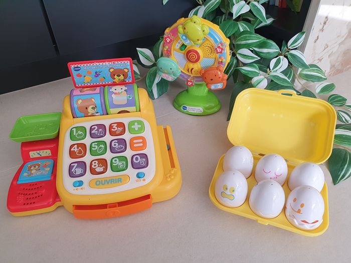 Lot jouets Vtech et Tomy - caisse, roue et boîte à oeufs