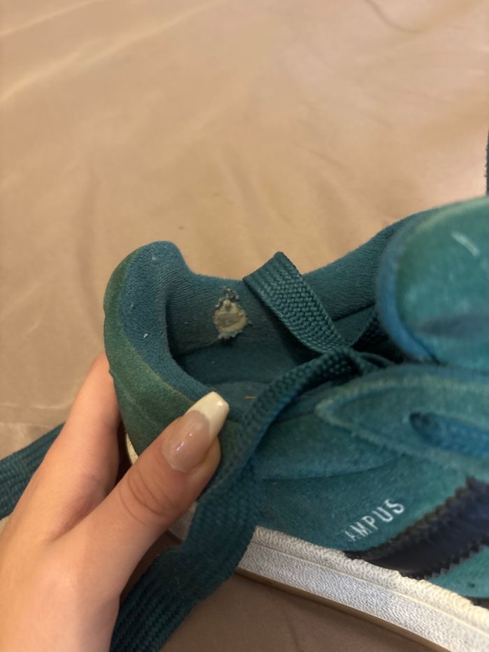 Campus avec un seul défaut mais pas gênant sur la basket droite le tissus est un peu arraché mais sa ne dérange pas pour marcher . Très confortable et rembourrés sur les côtés .