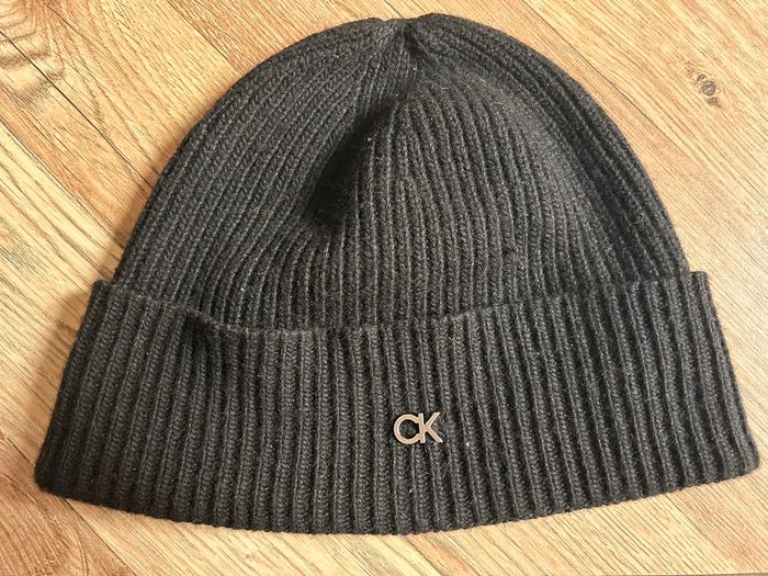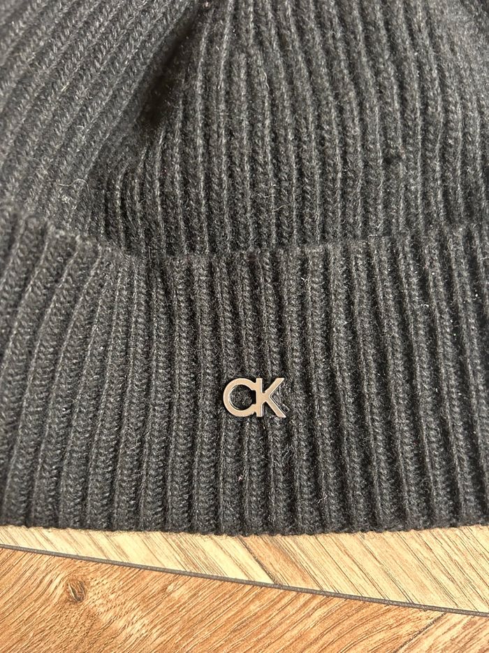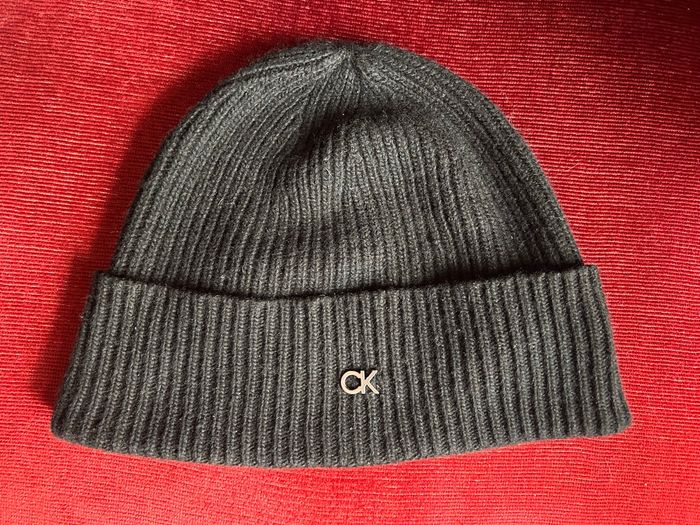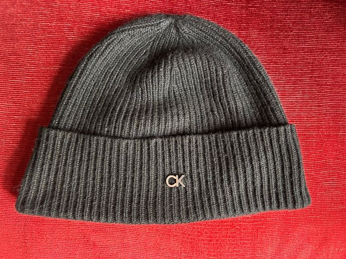 🖤 Bonnet Côtelé Calvin Klein avec Logo Métal (Taille Unique)