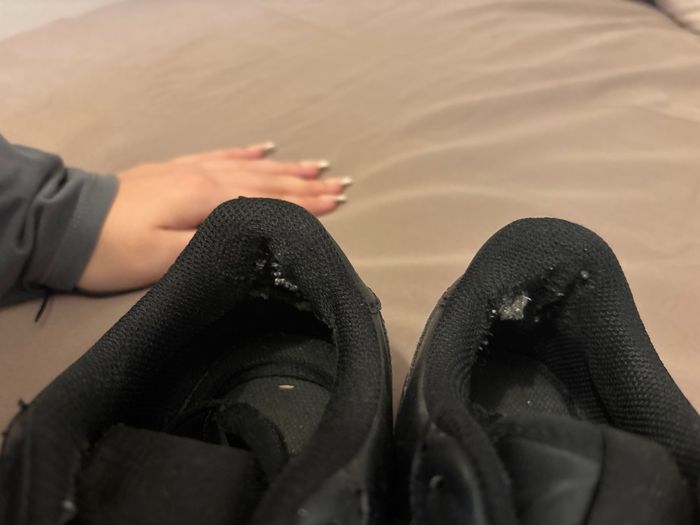 Défaut sur le derrière de la chaussure mais pas de gêne à marcher avec c’est seulement le tissu qui c’est enlever