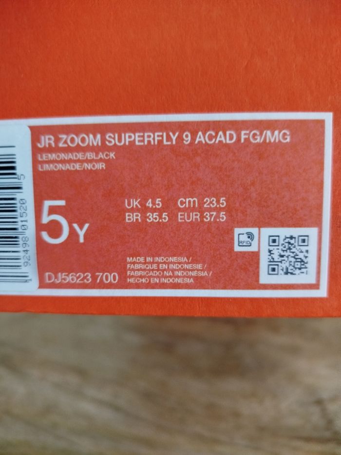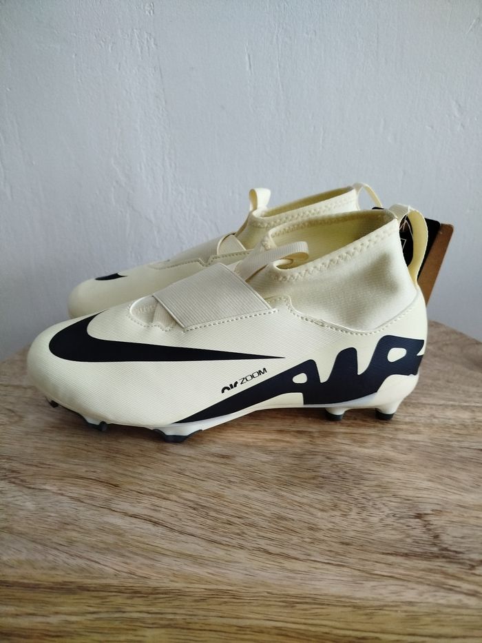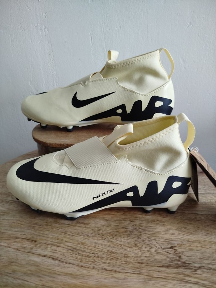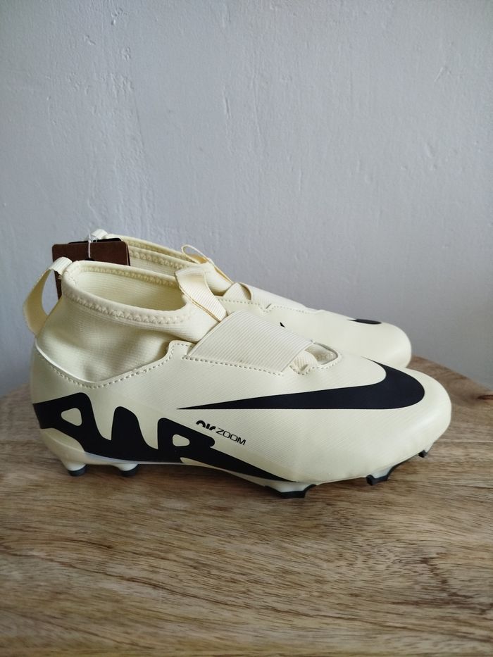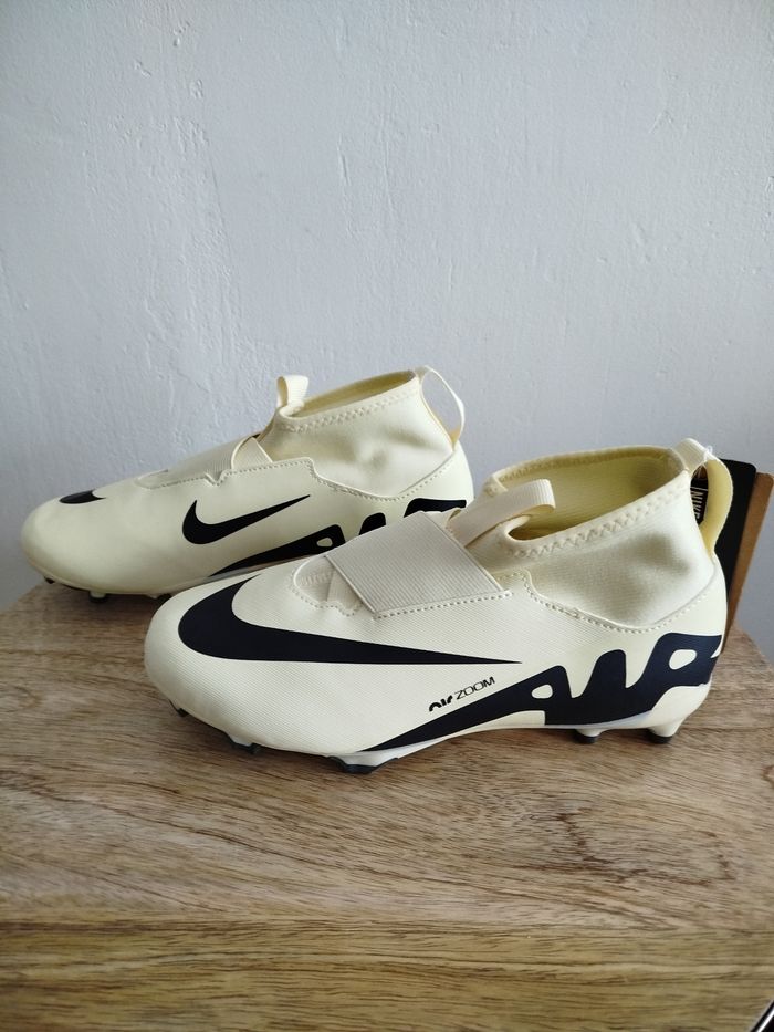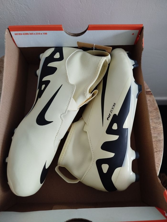 Je vends cette paire de crampons - Univers : Enfant - Marque : Nike - Modèle : JR Zoom Superfly 9 Acad - Pointure : 37,5 - Couleur : Beige - État Neuf Boîte sans couvercle N'hésitez pas à me contacter pour plus d'informations ou de photos.