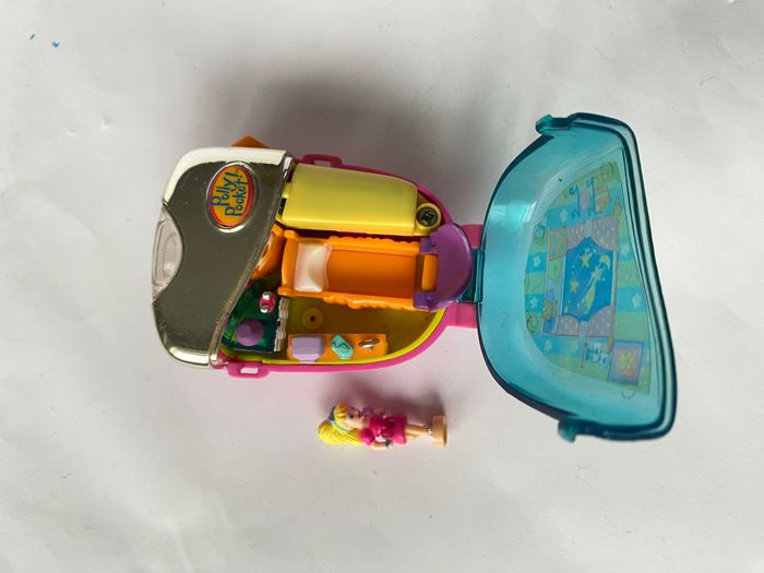 POLLY POCKET Lampe torche de poche avec 1 figurine d'origine. Interrupteur marche/arrêt et attache ceinture à l'arrière (photo 6) Fonctionne parfaitement, 2 piles 1,5 AAA fournies. (photo 4/5) Très bon état, pas de casse, ni décoloration.