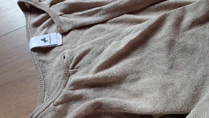 Lot de 2 gilets : 1 beige doré de chez Palomino, 1 beige avec motif étoile de chez Kiabi, boutons.