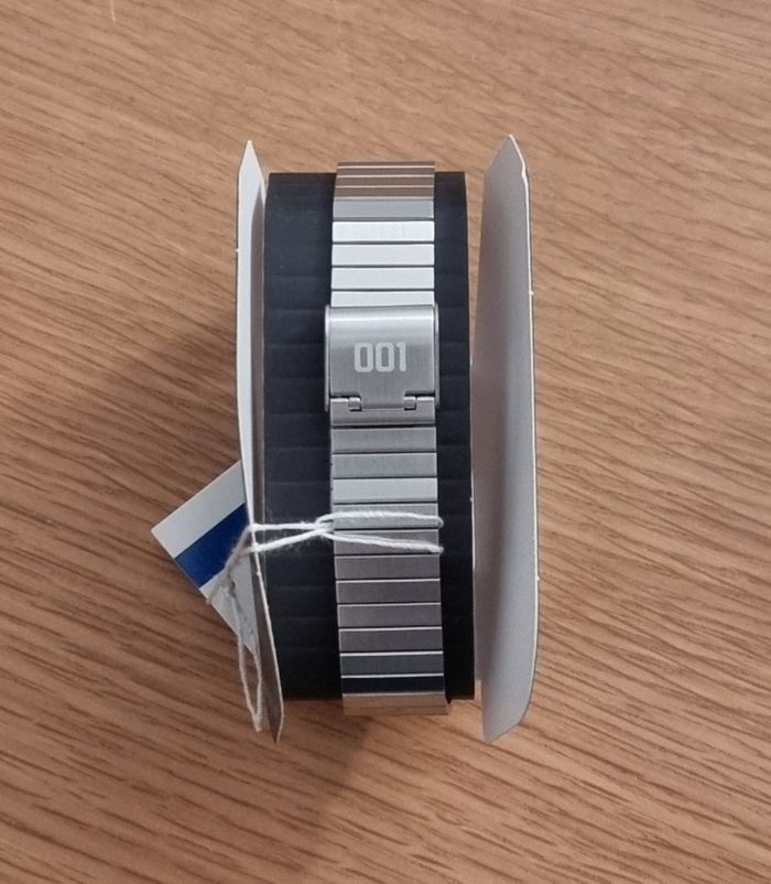 Fond de boîtier gravé « Stranger Things », fermoir marqué « 001 » (référence subtile à l’univers de la série).