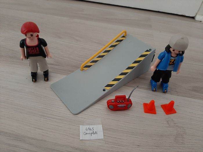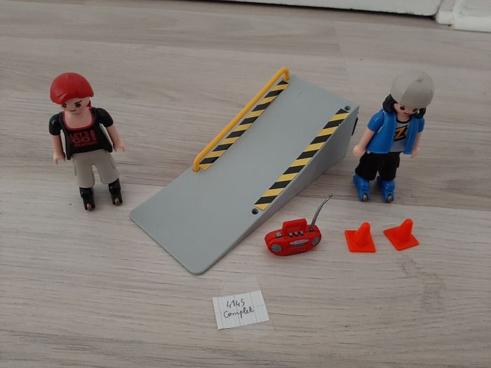 #Playmobil_Nathg2210 LOT DE 2 FIGURINES ROLLERS "PLAYMOBIL" - Réf.4415 - n°108 Lot de 2 figurines rollers - Avec tremplin - Radio - 2 cônes. Article d’occasion en très bon état – Nettoyé et désinfecté pour la vente. Possibilité d'envoyer d'autres photos sur simple demande. Maison non-fumeur - Sans animaux. Réduction lot activée. Allez voir mes autres ventes, je vide les placards. Beaucoup de vêtements de marque et beaucoup de jouets. Remise en mains propres ou possibilité d'envoi au tarif en vigueur à votre charge. Retour Refusé. Pour tout renseignement, n'hésitez pas à me contacter, je répondrai volontiers à vos questions. Réponse Assurée. Pour Consulter mes autres annonces tapez Nathg2210.