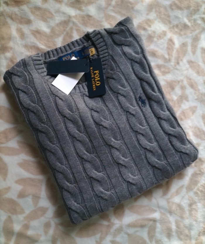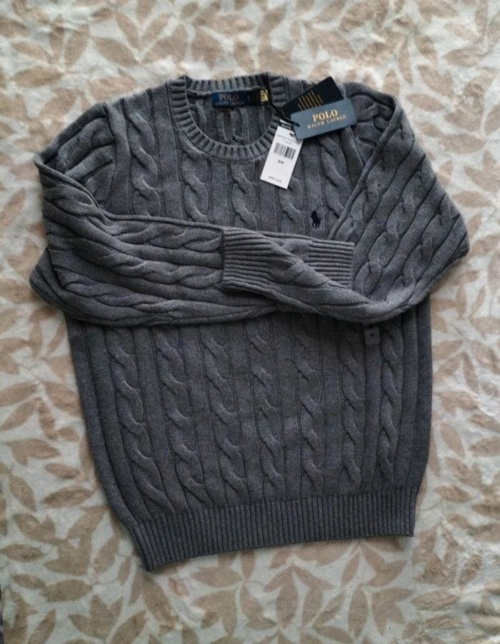 Pull homme ralph lauren torsadé gris taille L 100% coton neuf 76€ - photo numéro 1
