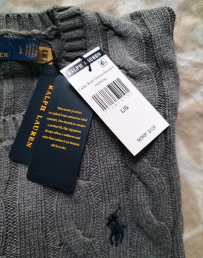 Pull homme ralph lauren torsadé gris taille L 100% coton neuf 76€ - photo numéro 6